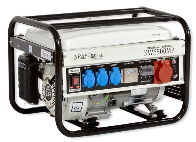 navrhnutý tak, aby generoval striedavý prúd 220V / 380V pomocou spaľovacieho 4-taktného motora japonského dizajnu OHV s výkonom 6,5 HP a generátorom maximálneho výkonu 2 500 W.
