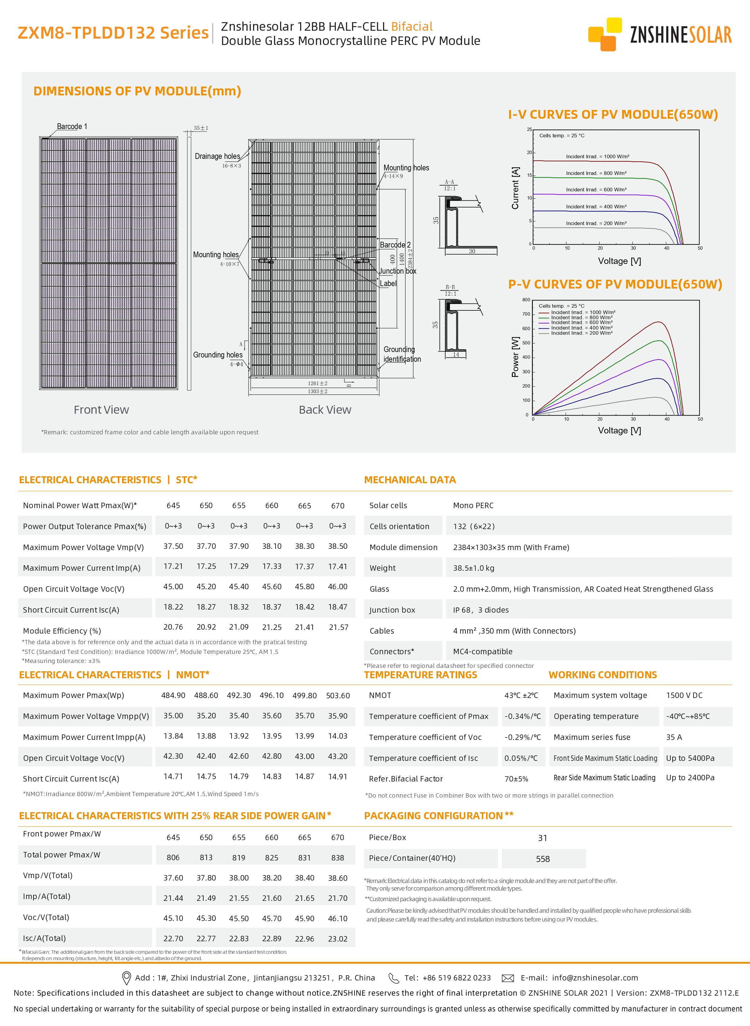 Fotovoltaický panel ZNSHINE 660W SILVER FRAME ZS660W-SR-B