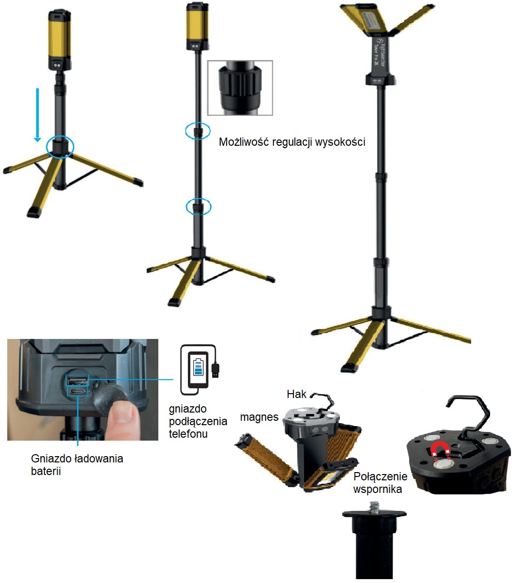 LAMPA NA STOJANE 4500 Lm 2 x 21700 4000 mAh KD1268 Profesionálna lampa na stojane od Kraf&Dele, model KD1268, je praktické zariadenie na osvetlenie a presvetlenie miestností. Zariadenie je ideálne na osvetlenie pri renovačných prácach ako je maľovanie, výplň a pod. Často sa používa aj vo fotoateliéri. Svietidlo má vodotesné, dobre skonštruované hliníkové puzdro. REŽIMY NASTAVENIA SVETLA: Vysoký (4500 Lm) pracovný čas: 1,5 h Stredný (3000 Lm) pracovný čas: 3,5 h Nízky (1500 Lm) pracovný čas: 7 h Lampa je vybavená efektívnou 4000 mAh batériou, ktorá zaisťuje nepretržitú prevádzku až 7 hodín. ŠPECIFIKÁCIA: Batéria: 4000 mAh 2 x 21700 3 režimy jasu Doba nabíjania: 7 h USB kábel: 5V 2A Veľkosť: 12 x 12 x 89 cm Trieda ochrany: IPX0 Hmotnosť: cca. 3,3 kg ZLOŽENIE: Svietidlo na stojane 4500 Lm KD1268 Napájací kábel Účtenka / Faktúra Originál balenie Záruka