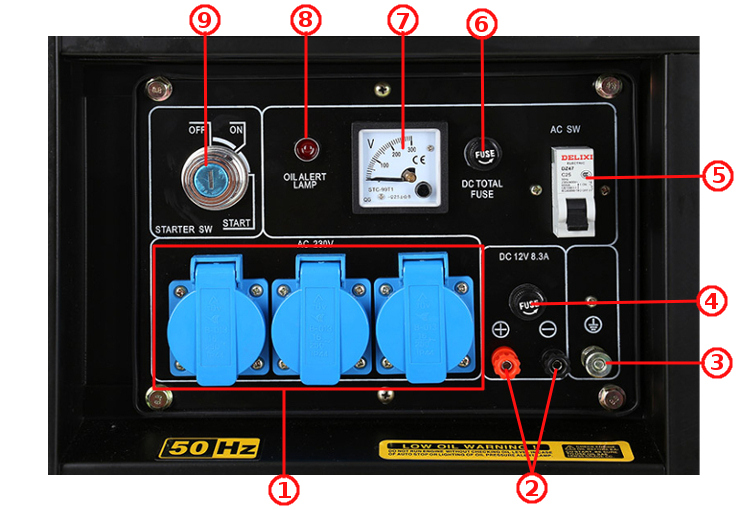 alebo do 230V zástrčiek - jedna fáza = jedna 230V zástrčka. tj - 1000W / kus v prípade 2 zástrčiek na elektrocentrále 2 x 230V zástrčka = spolu 2000W v prípade 3 zástrčiek na elektrocentrále 3 x 230V zástrčka = spolu 3000W