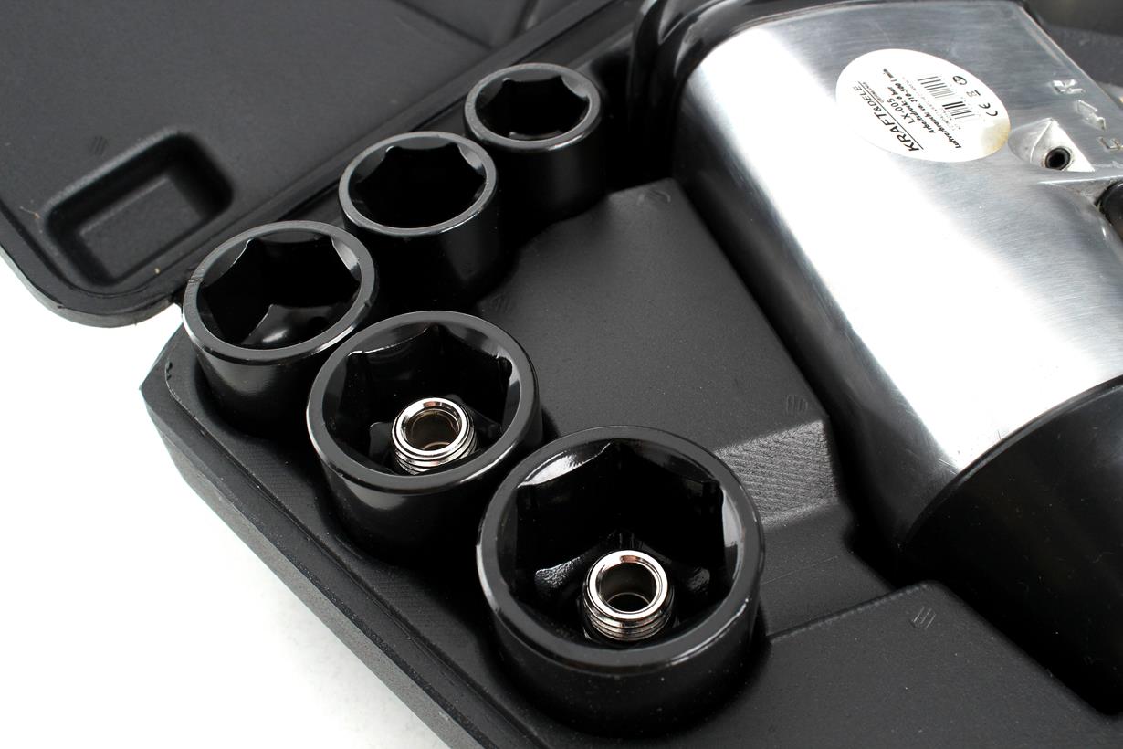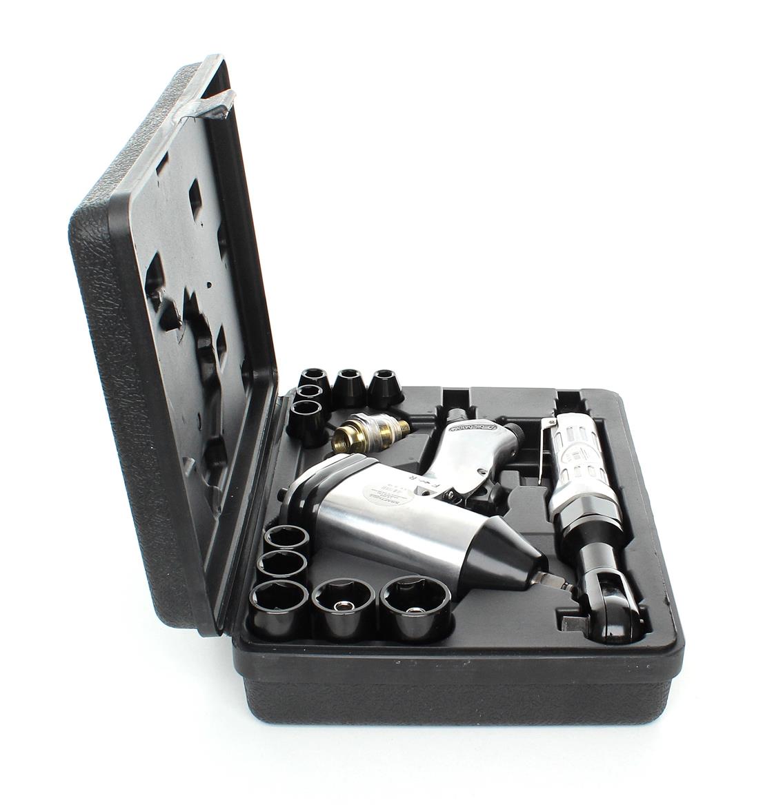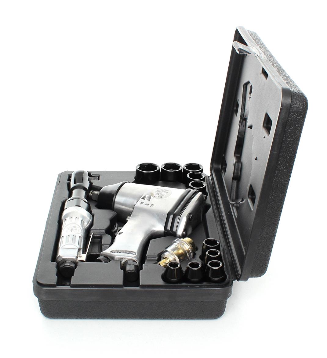 Sada obsahuje predĺženie, ktoré umožňuje prístup k vzdialeným skrutkovým spojom. Pneumatický kľúč má funkciu otáčania oboch strán doprava / doľava.