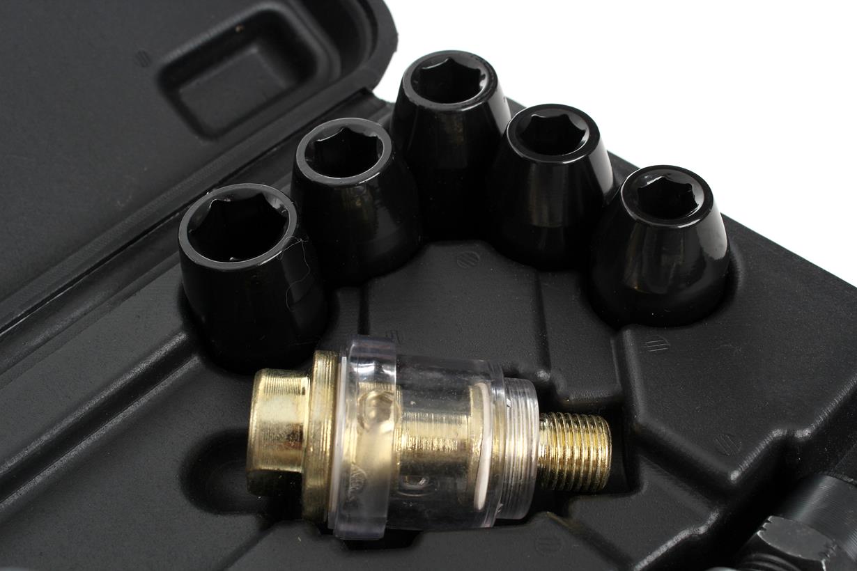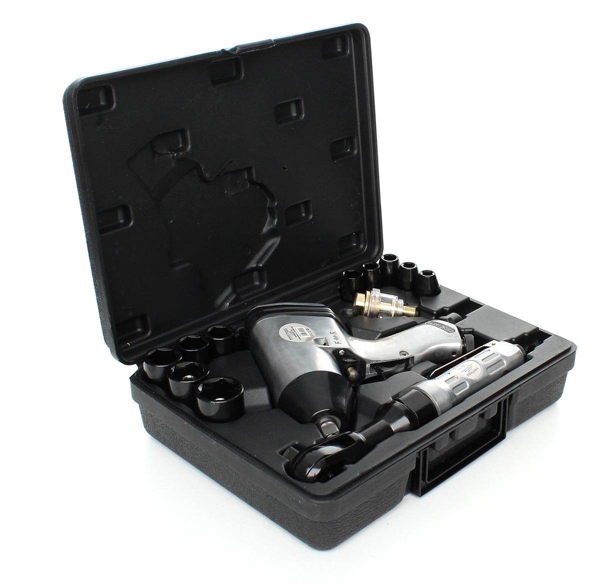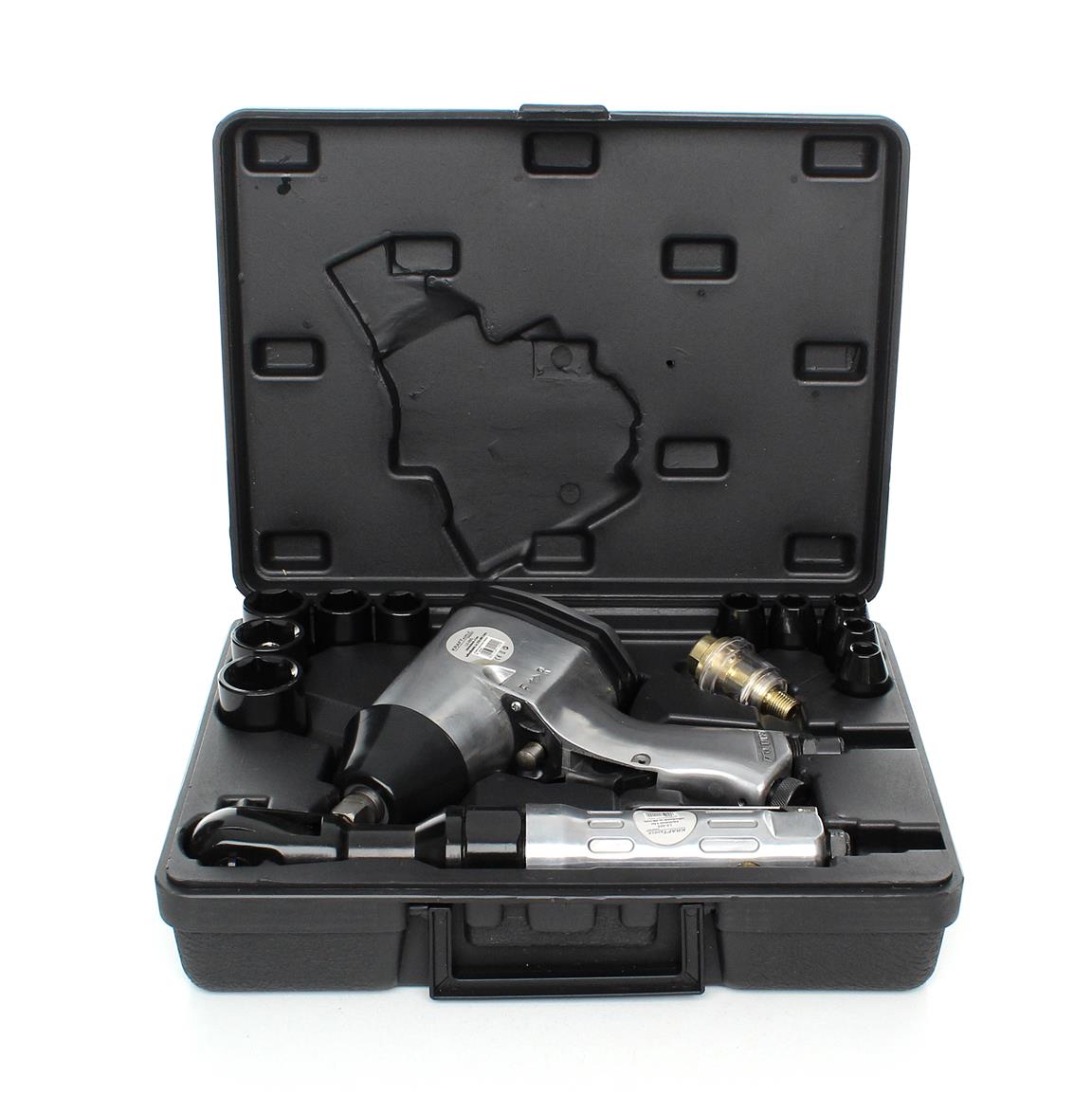 Sada obsahuje predĺženie, ktoré umožňuje prístup k vzdialeným skrutkovým spojom. Pneumatický kľúč má funkciu otáčania oboch strán doprava / doľava.