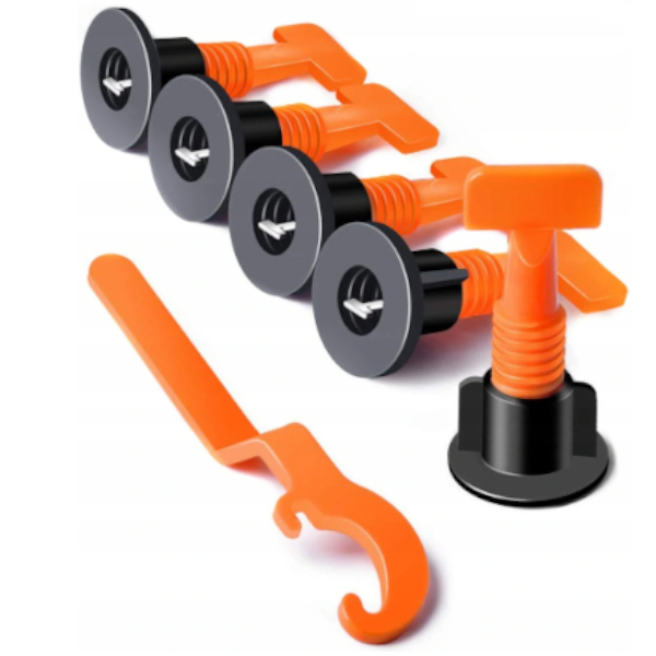 Sada na vyrovnávanie obkladov, dlaždíc a podobných podlahových materiálov. Spony sú opakovane použiteľné, čo je veľká výhoda pri rekonštrukcii kúpeľne či kuchyne. Nástroje sú vhodné pre ľudí pracujúcich v oblasti renovácie a stavebníctva. Spona sa ľahko používa a je vhodná či už pre profesionálov, ale aj pre domácich kutilov.