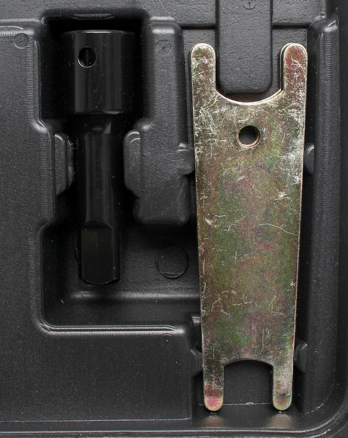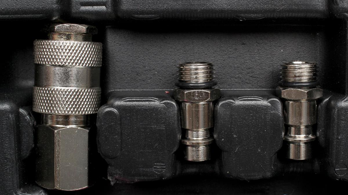 Sada obsahuje predĺženie, ktoré umožňuje prístup k vzdialeným skrutkovým spojom. Pneumatický kľúč má funkciu otáčania oboch strán doprava / doľava.