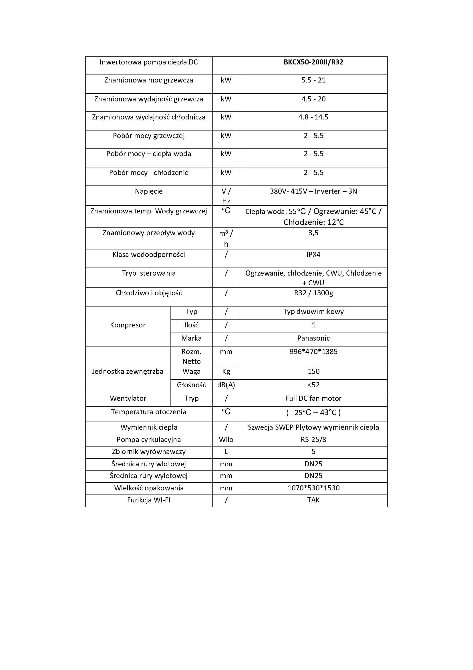 • 20 kW NULITE Invertorové tepelné čerpadlo BKDX50-200II/R32