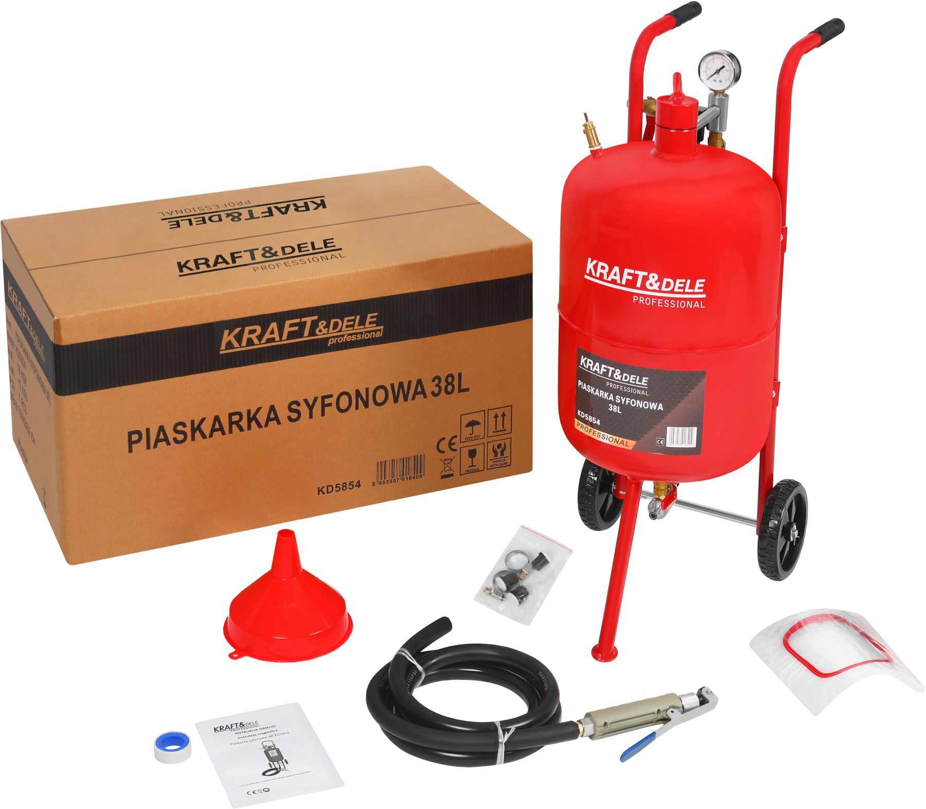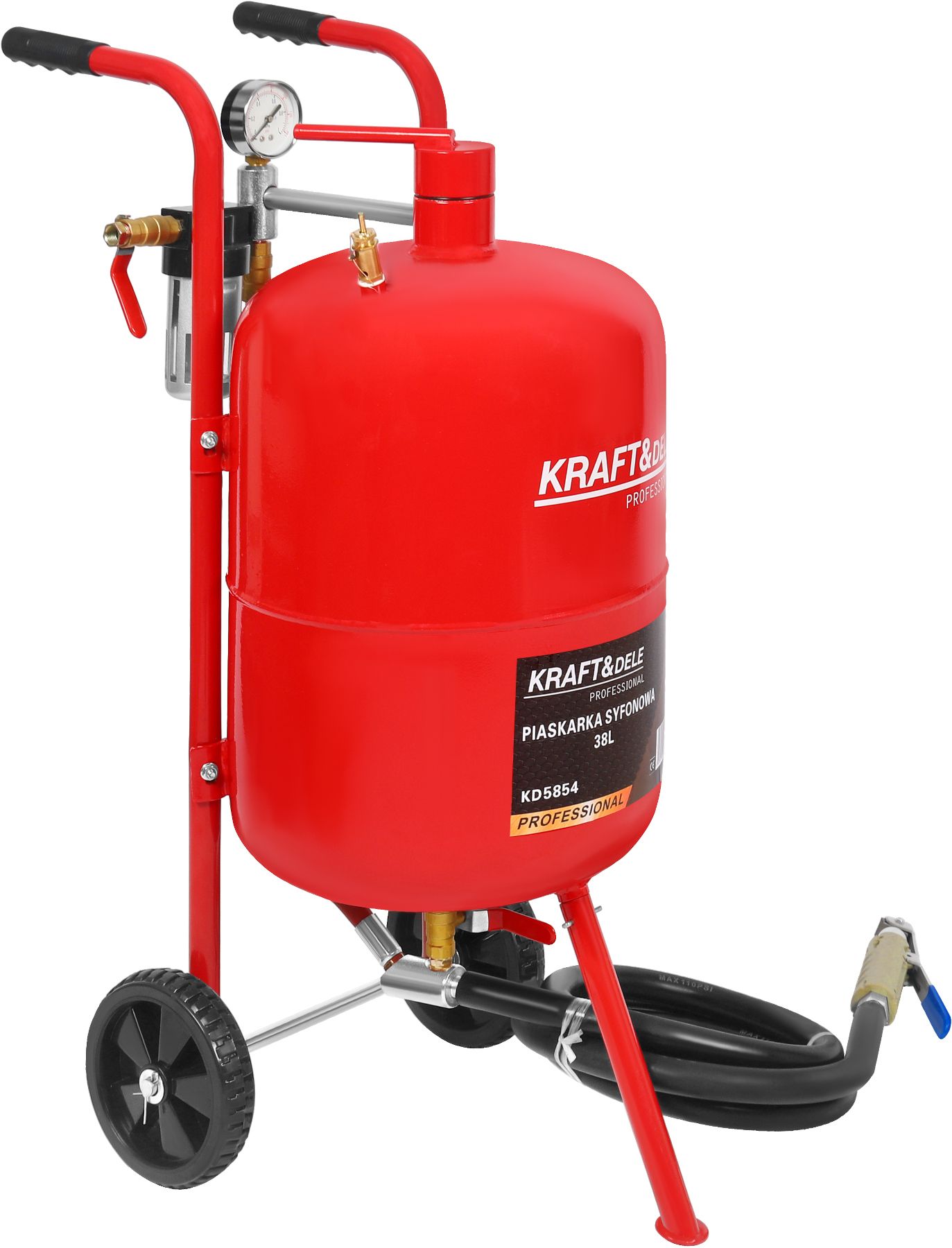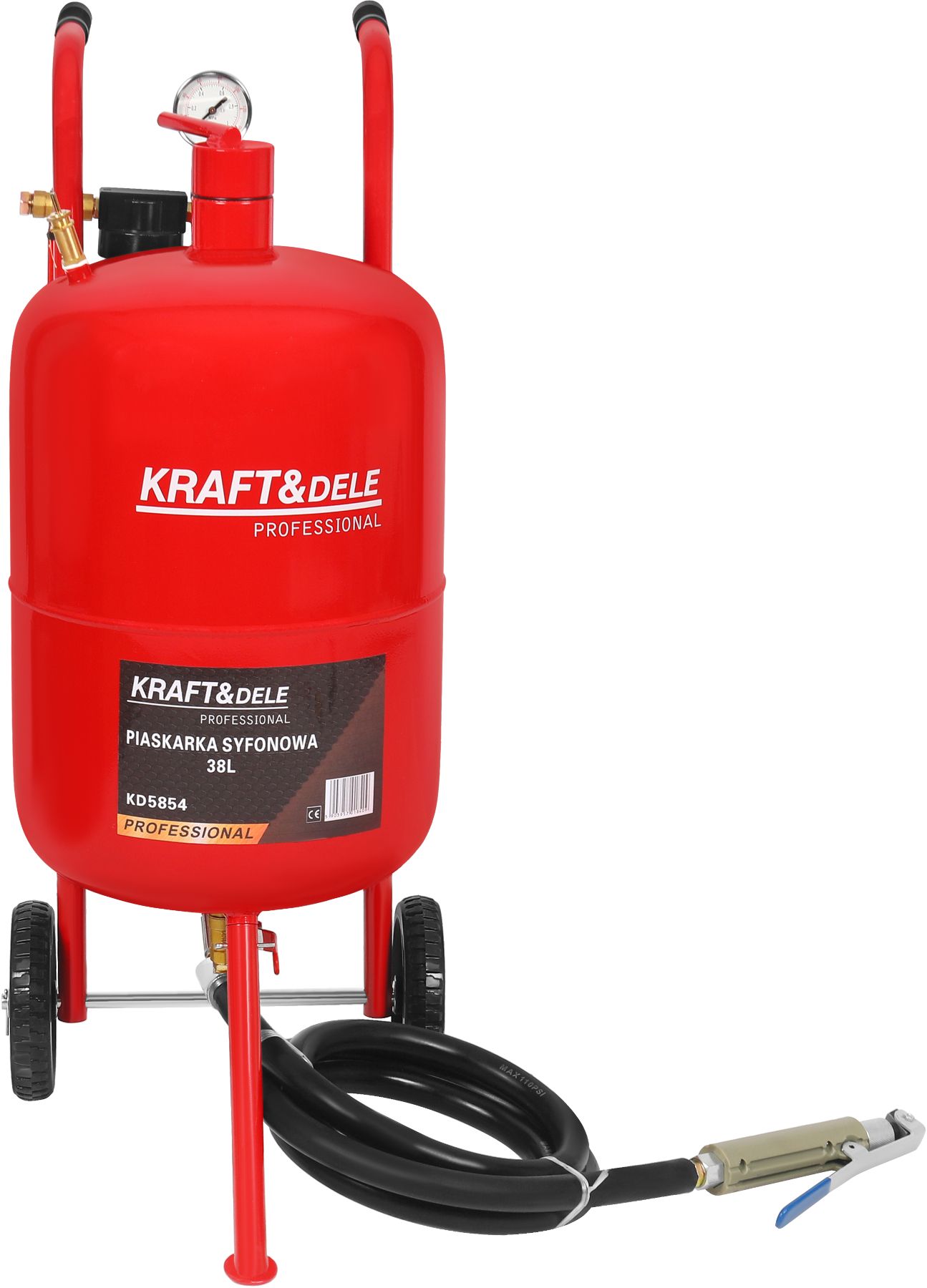 KD5854 je robustný a efektívny 38-litrový sifónový pieskovač určený na náročné čistiace a renovačné práce. Je vybavený veľkým, ľahko čitateľným manometrom a robustnou rukoväťou, čo zaisťuje pohodlie a presnosť počas prevádzky.
