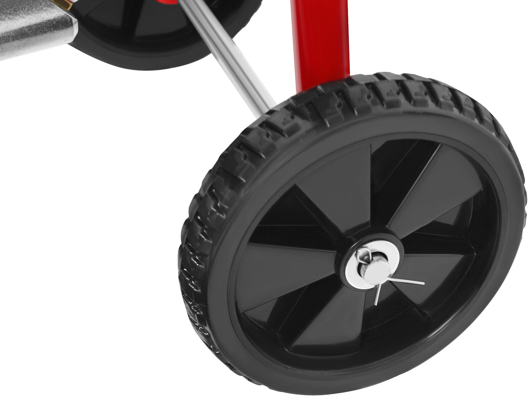 ✅ Dve veľké kolesá zabezpečujú jednoduchý pohyb pieskovacieho stroja