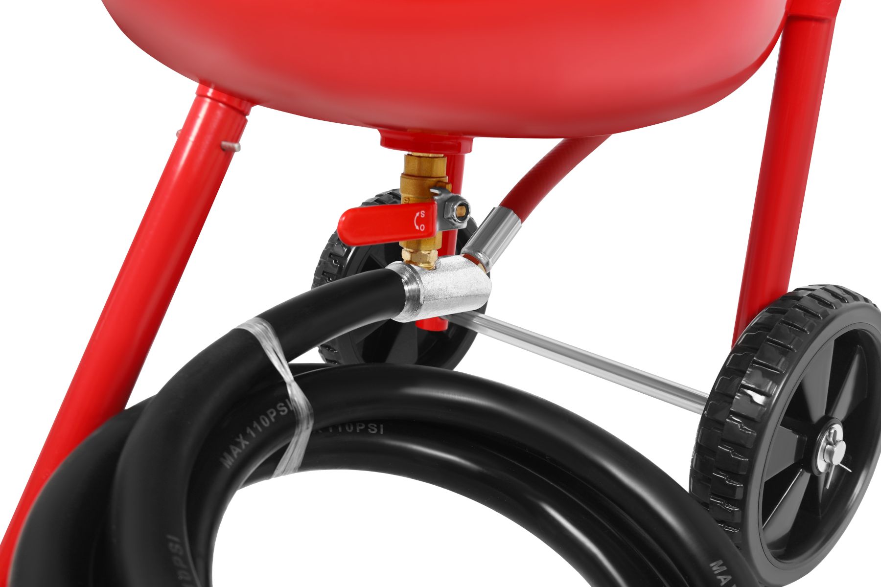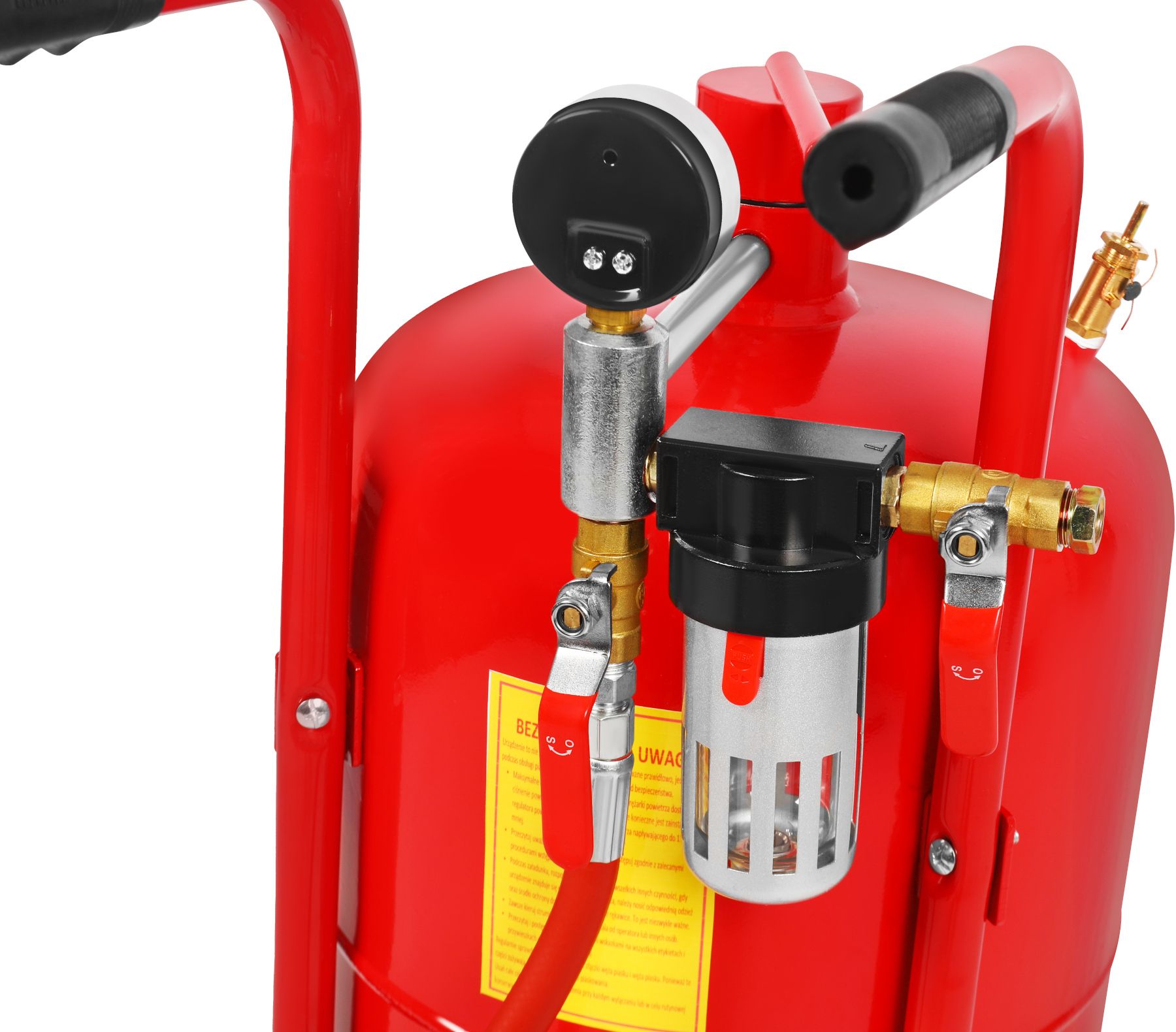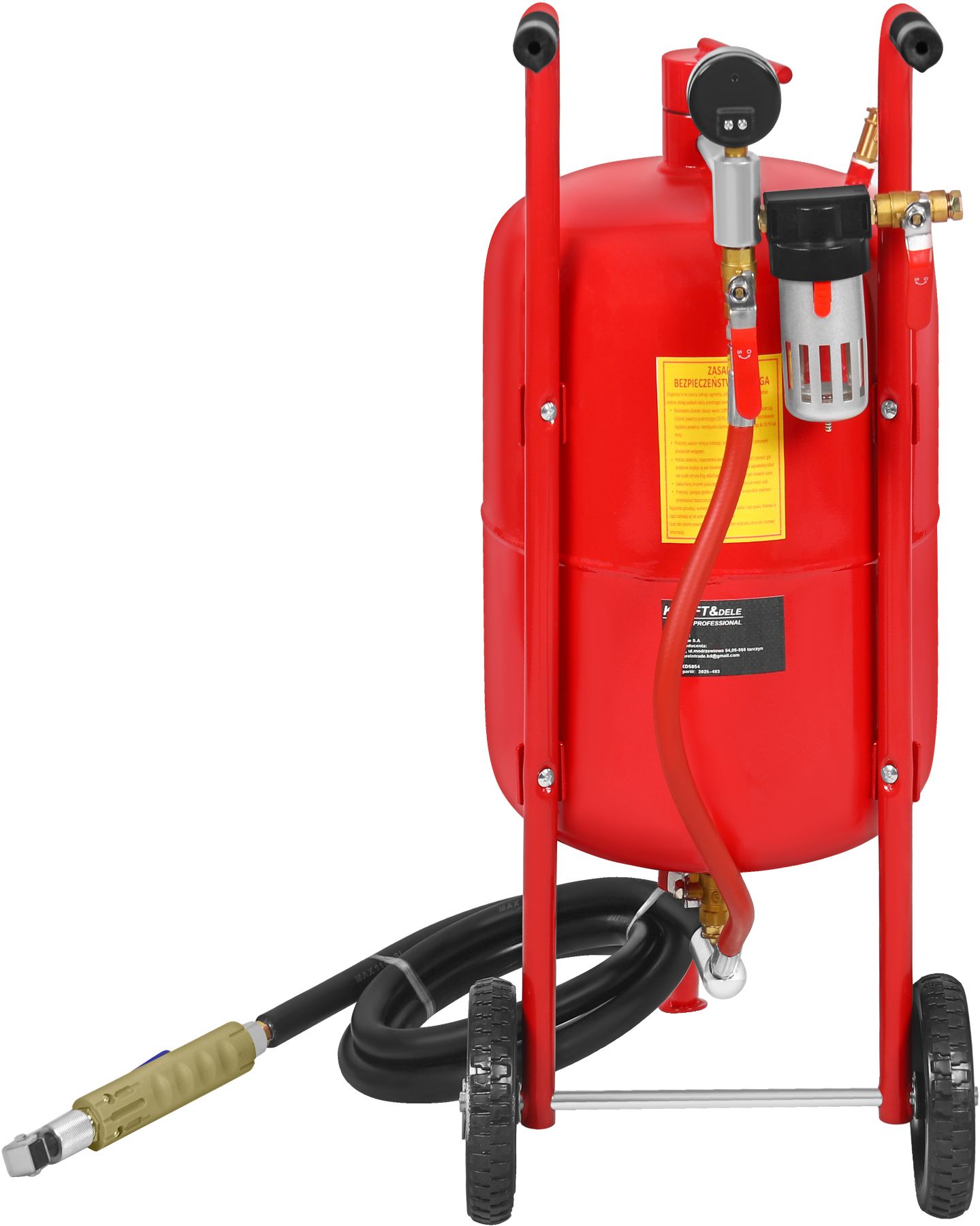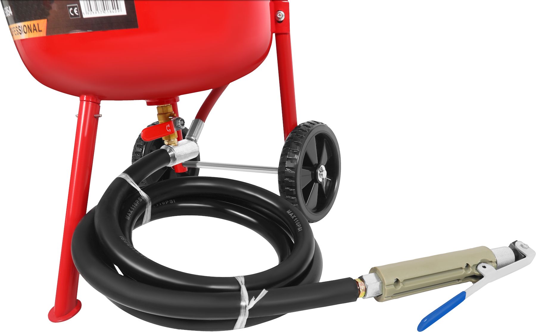 Toto zariadenie je vhodné pre dielne aj profesionálne použitie. Veľké transportné kolesá uľahčujú premiestňovanie pieskovacieho stroja a schopnosť pracovať s rôznymi abrazívnymi materiálmi, od korundu po sódu a sklenené perly, zvyšuje všestrannosť zariadenia.