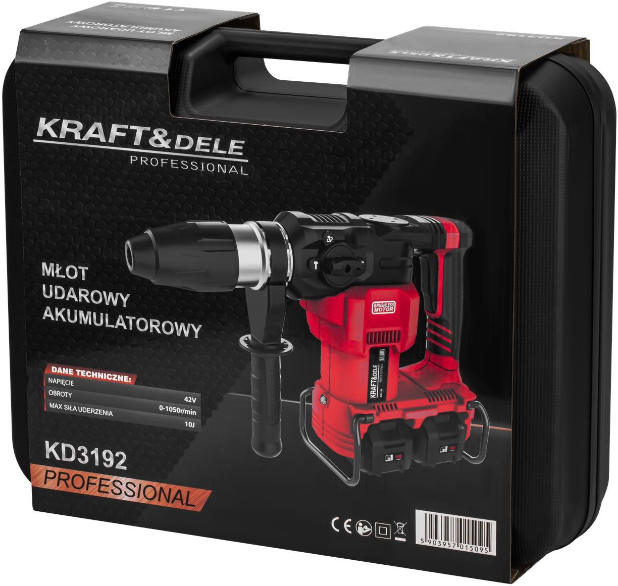 Príklepové kladivo KD3192 je všestranné akumulátorové náradie určené pre náročné stavebné a renovačné úlohy. Súčasným pripojením dvoch batérií dosahuje zariadenie napätie 42V a energiu úderu 10J. Je ideálne na vŕtanie a sekanie do betónu, tehál a iných tvrdých materiálov.