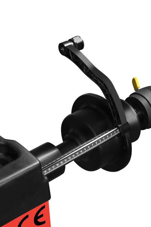Automatické merania dvoch hodnôt (vzdialenosť/priemer) zefektívňujú proces nastavenia stroja. Vďaka kompaktným rozmerom a premyslenému dizajnu je možné vyvažovačku kolies umiestniť už od 500 mm od steny na ľavej strane a 600 mm od zadnej strany.
