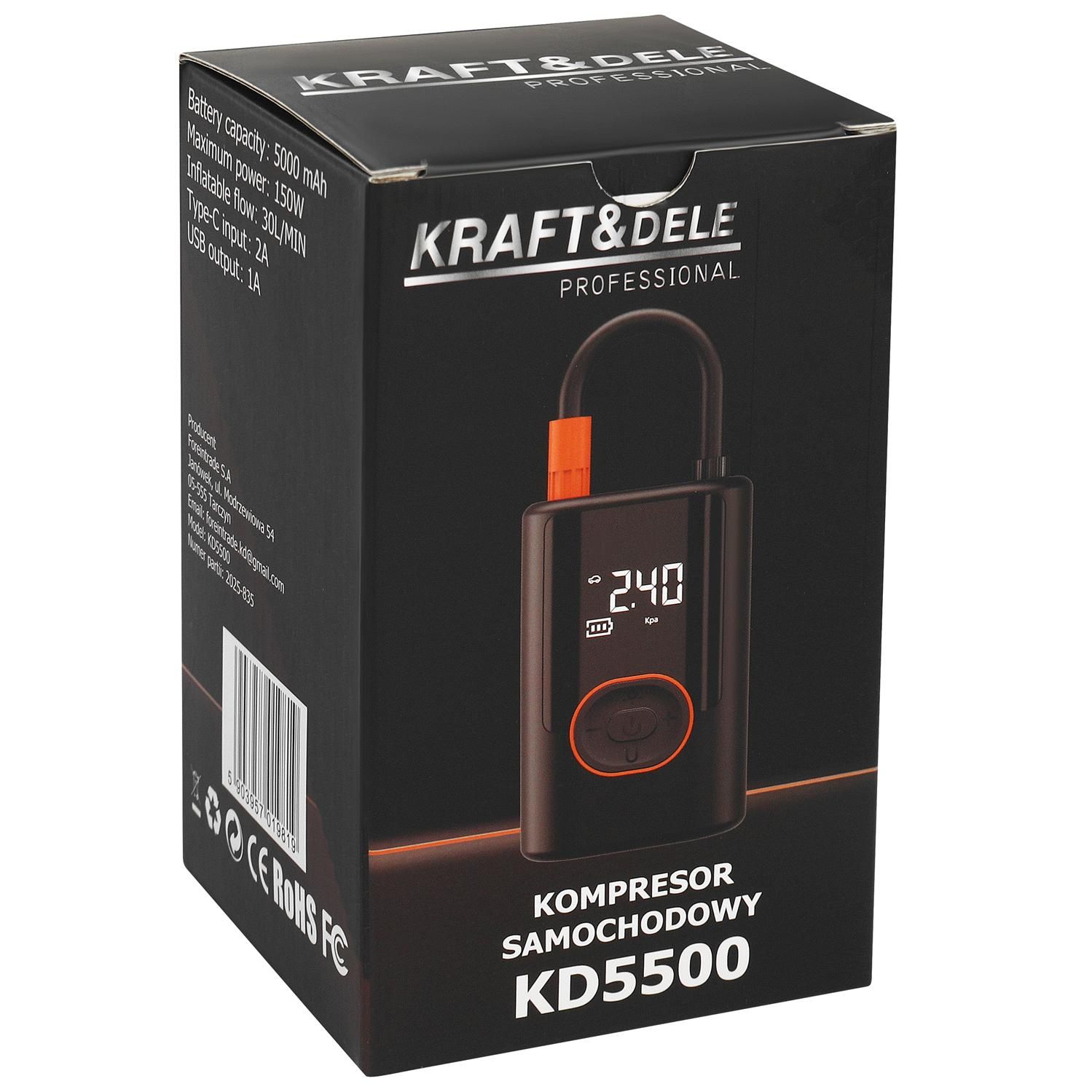 Model KD5500 je vybavený intuitívnym LCD displejom s nastavením tlaku a prevodom jednotiek (PSI, BAR, KPA, kg/cm²) a zaručuje presné nastavenie prevádzkových parametrov. Zariadenie má vstavané automatické režimy hustenia, ktoré umožňujú rýchlo nastaviť tlak podľa typu husteného predmetu – pneumatika auta, pneumatika motocykla, pneumatika bicykla alebo lopta.
