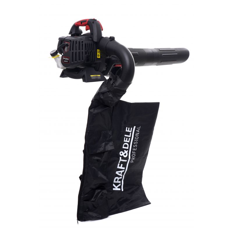 Benzínový vysávač s fúkačom lístia Kraft&Dele KD5153 s výkonom 3 HP určený na čistenie lístia a trávy, ale aj snehu.