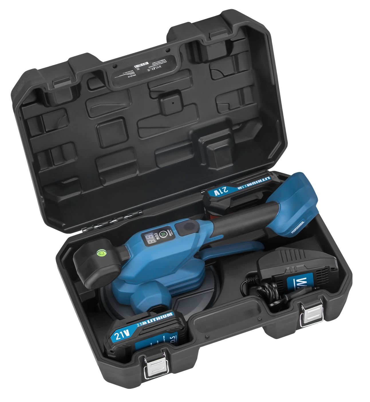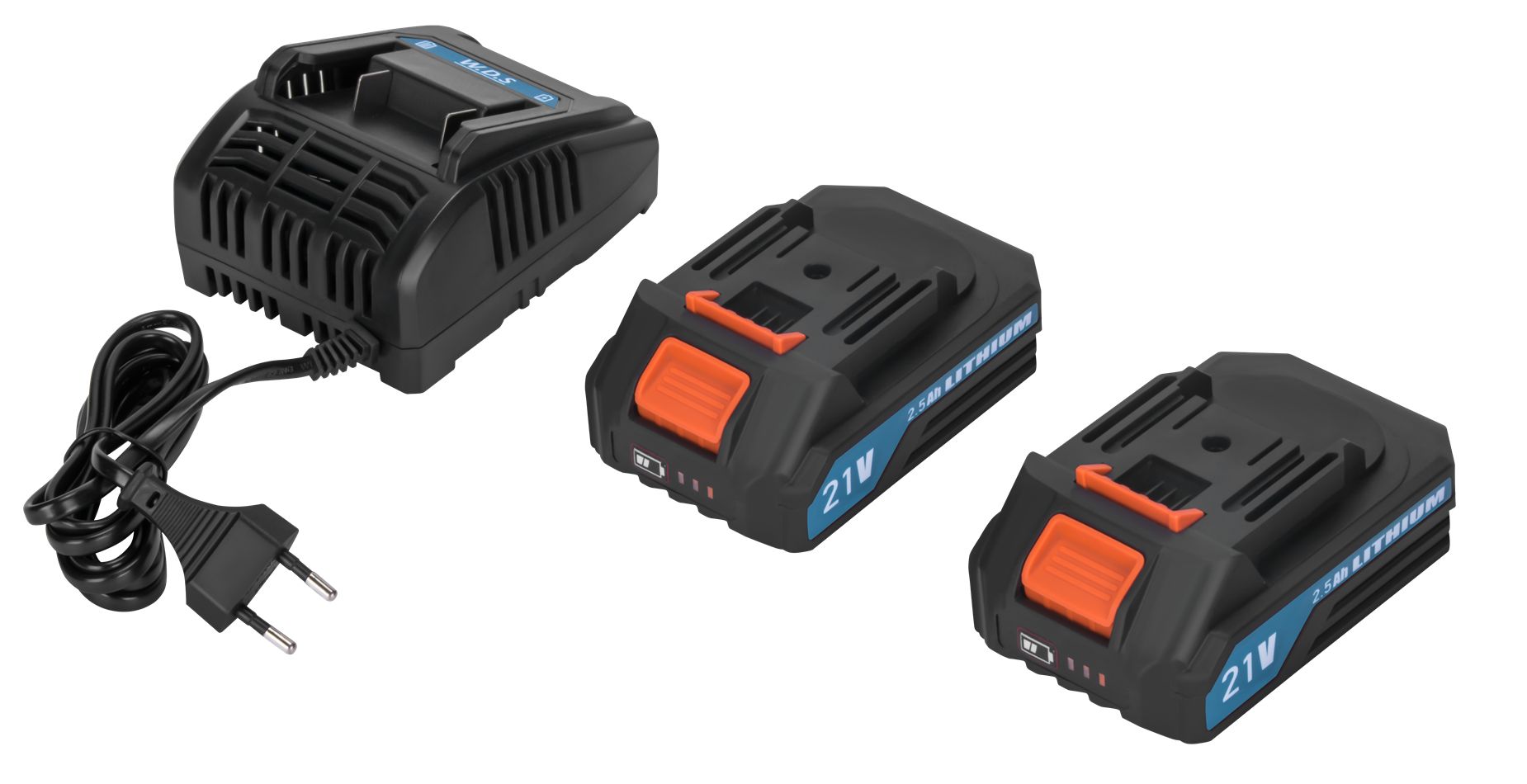 Model WDS2694 je vybavený výkonnou batériou 21 V, 2,5 Ah, ktorá umožňuje dlhú prevádzku bez potreby zdroja napájania. Sada obsahuje aj nabíjačku 230 V / 50 Hz pre rýchle nabíjanie.