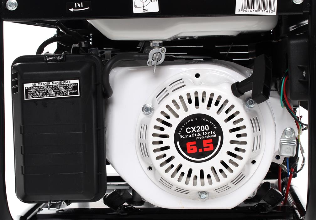 navrhnutý tak, aby generoval striedavý prúd 220V / 380V pomocou spaľovacieho 4-taktného motora japonského dizajnu OHV s výkonom 6,5 HP a generátorom maximálneho výkonu 2 500 W.