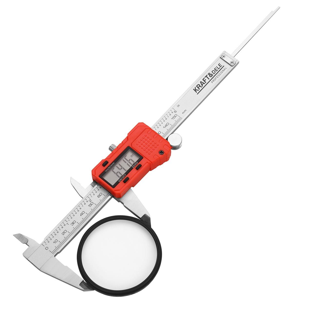 Elektronické posuvné meradlo KD10070 150 mm je presný merací nástroj určený na profesionálne a hobby použitie. Je ideálne pre dielne, priemyselné závody a technické služby a umožňuje vám rýchlo a presne merať vonkajšie, vnútorné a hĺbkové rozmery.