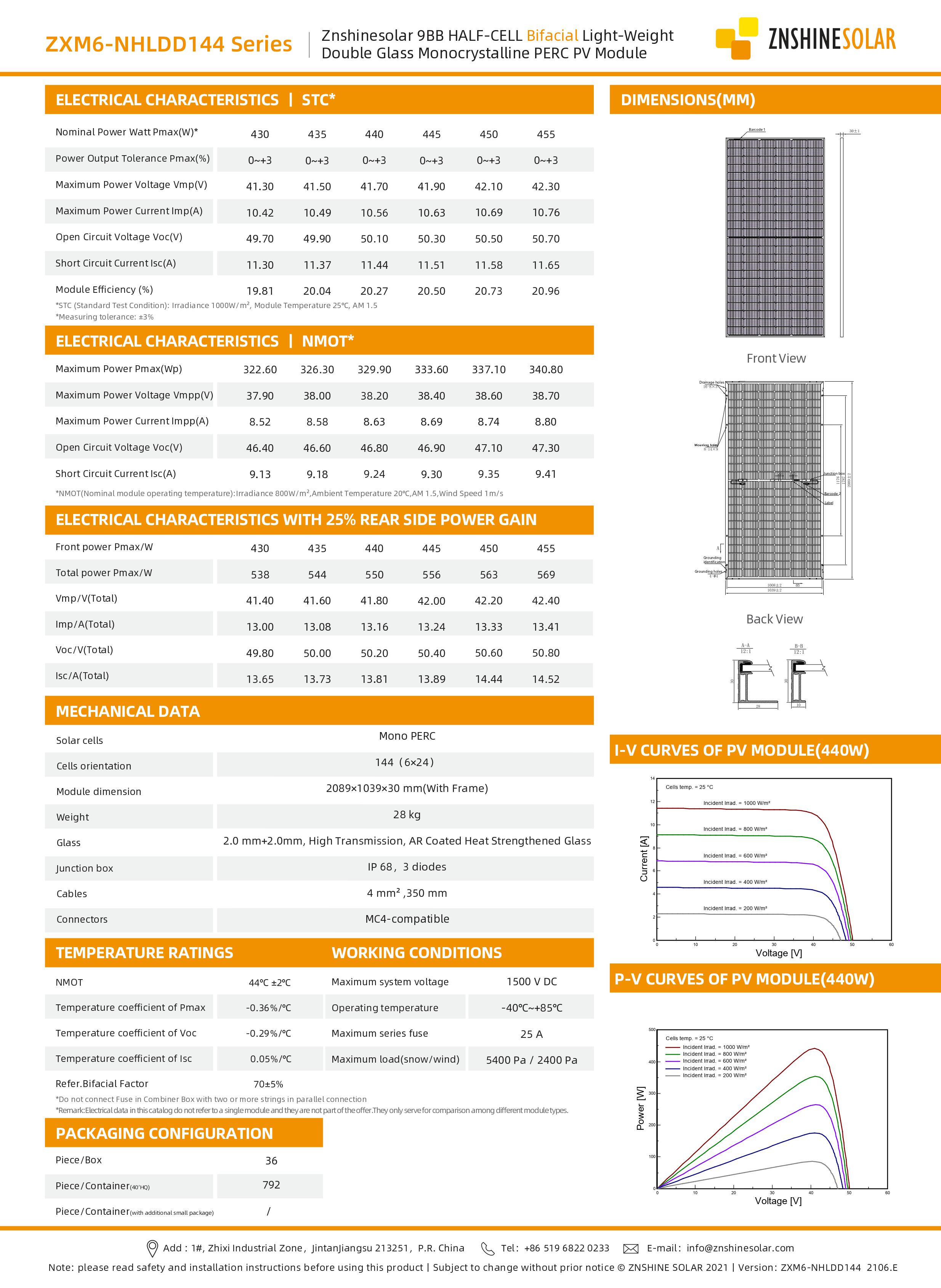 Fotovoltický panel 455W ZNSHINE BIFACIAL ZS455W-CZB