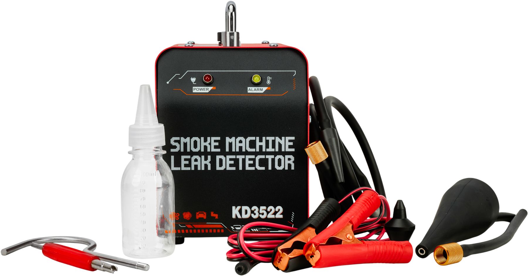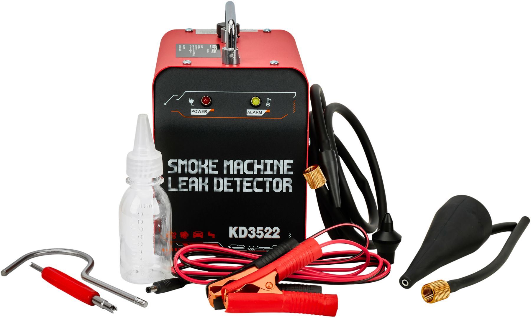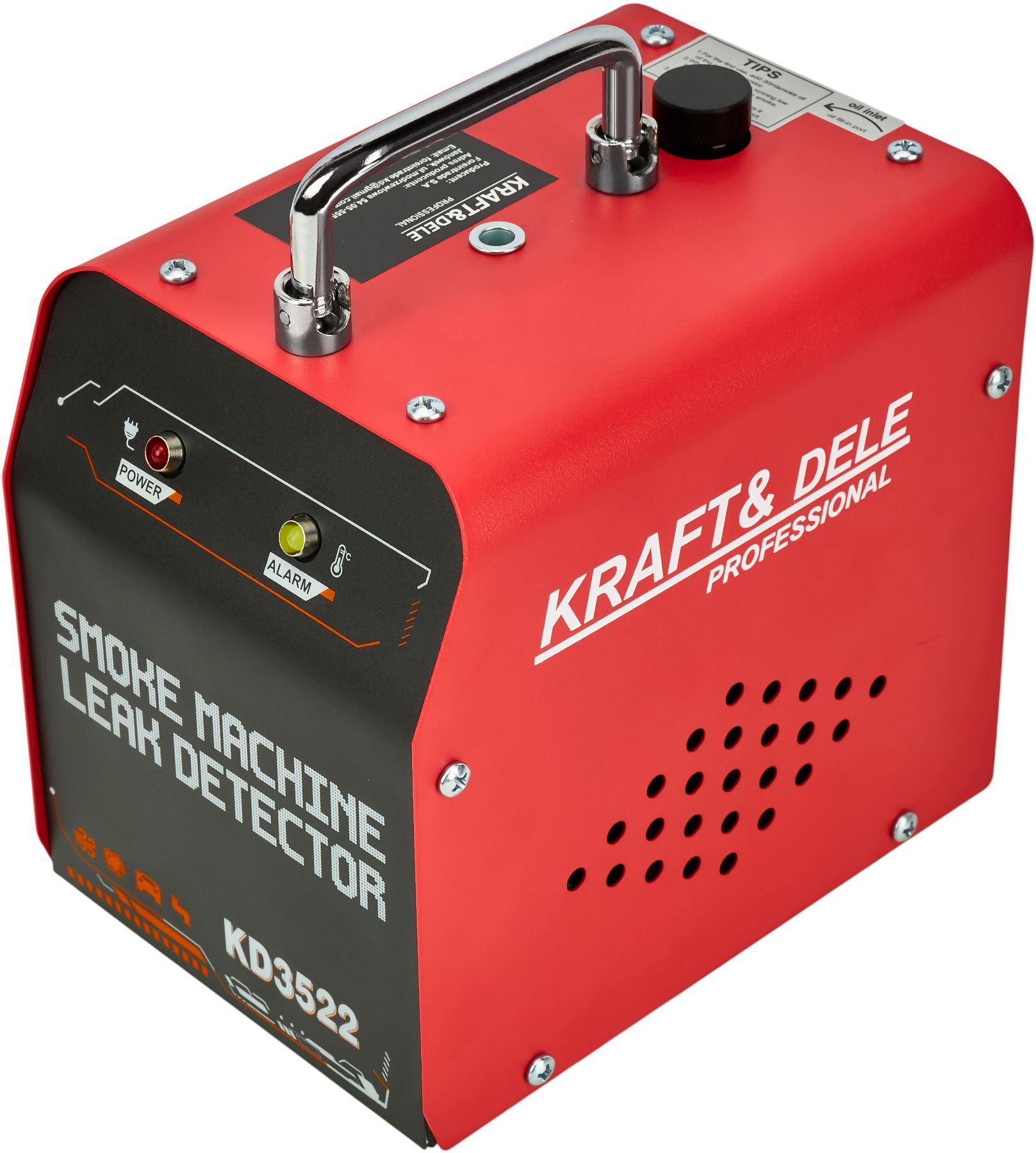 Generátor dymu KRAFT&DELE KD3522 je profesionálne diagnostické zariadenie na detekciu únikov v potrubných systémoch vozidiel a technických inštaláciách. Umožňuje rýchlu, bezpečnú a presnú lokalizáciu únikov v systémoch, ako sú: systémy EVAP, sacie, výfukové, palivové, chladiace a podtlakové potrubia.