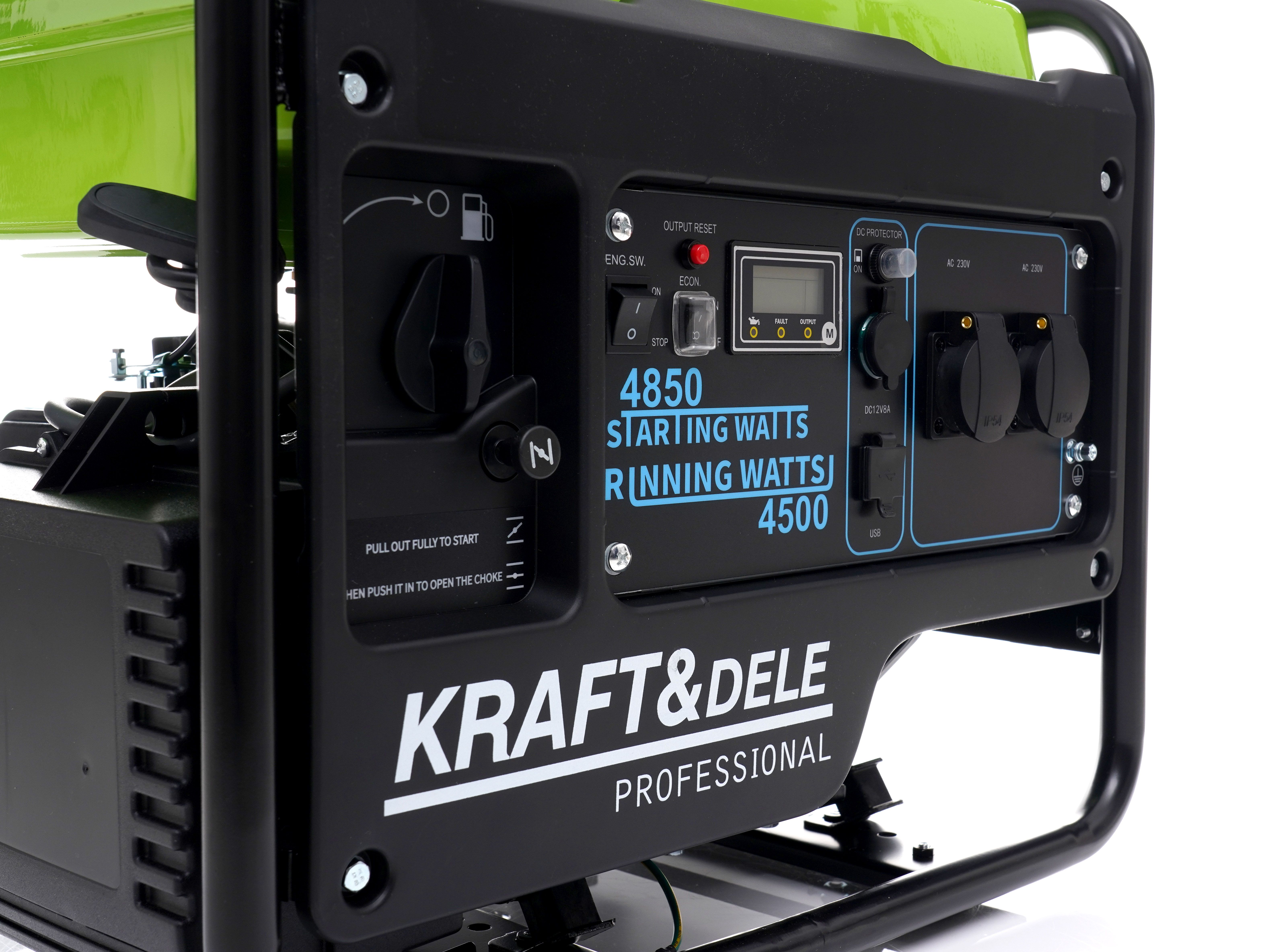 Generátor, elektrocentrála 4,5kW / 4,85kW GENERÁTOR GENERÁTOR INVERTOR 4,5 kW / 4,85 kW KD688 POPIS Vysokokvalitné generátory KRAFT&DELE sú ideálne pre núdzové napájanie: • domy, kancelárie, vozidlá, • karavany, nákladné autá, traktory, autá, • kempingy • priemyselné zariadenia. Vďaka našej kombinácii skúseností a pokročilých technológií vieme ponúknuť široký sortiment generátorov pre domácnosti aj firmy použitie. Týmto spôsobom generátor znižuje spotrebu paliva, čím predlžuje životnosť motora a zvyšuje intervaly medzi dopĺňaním palivovej nádrže.