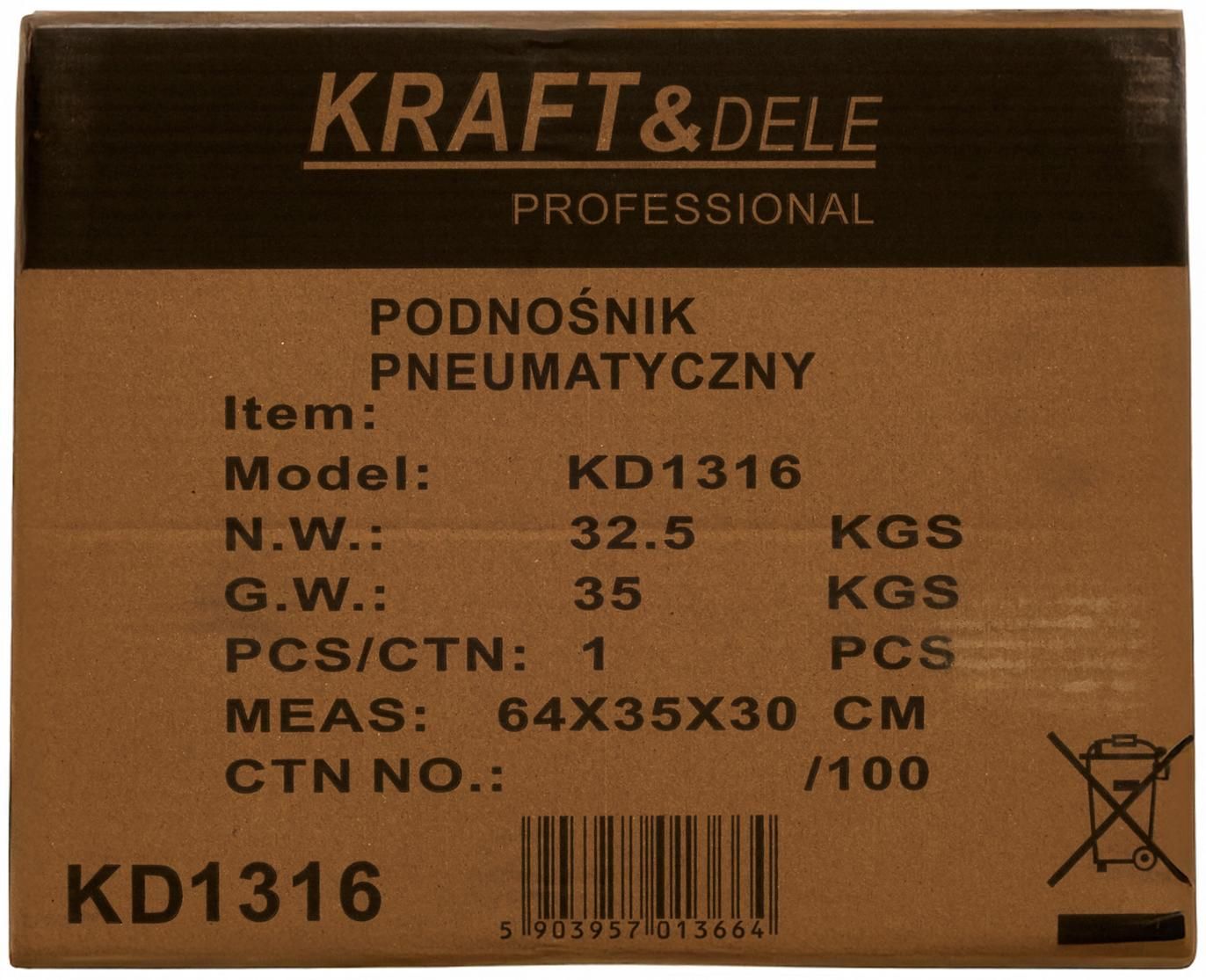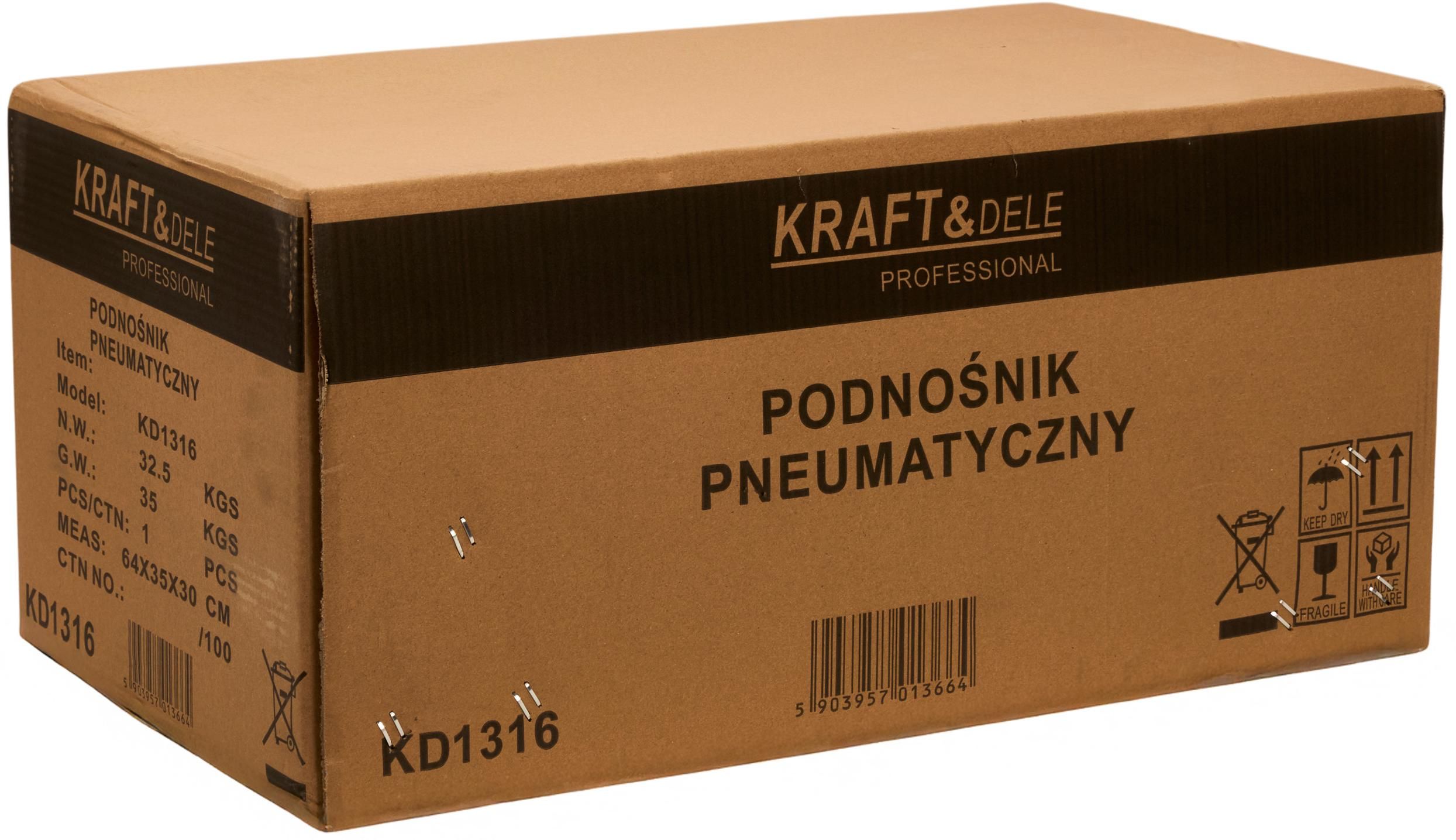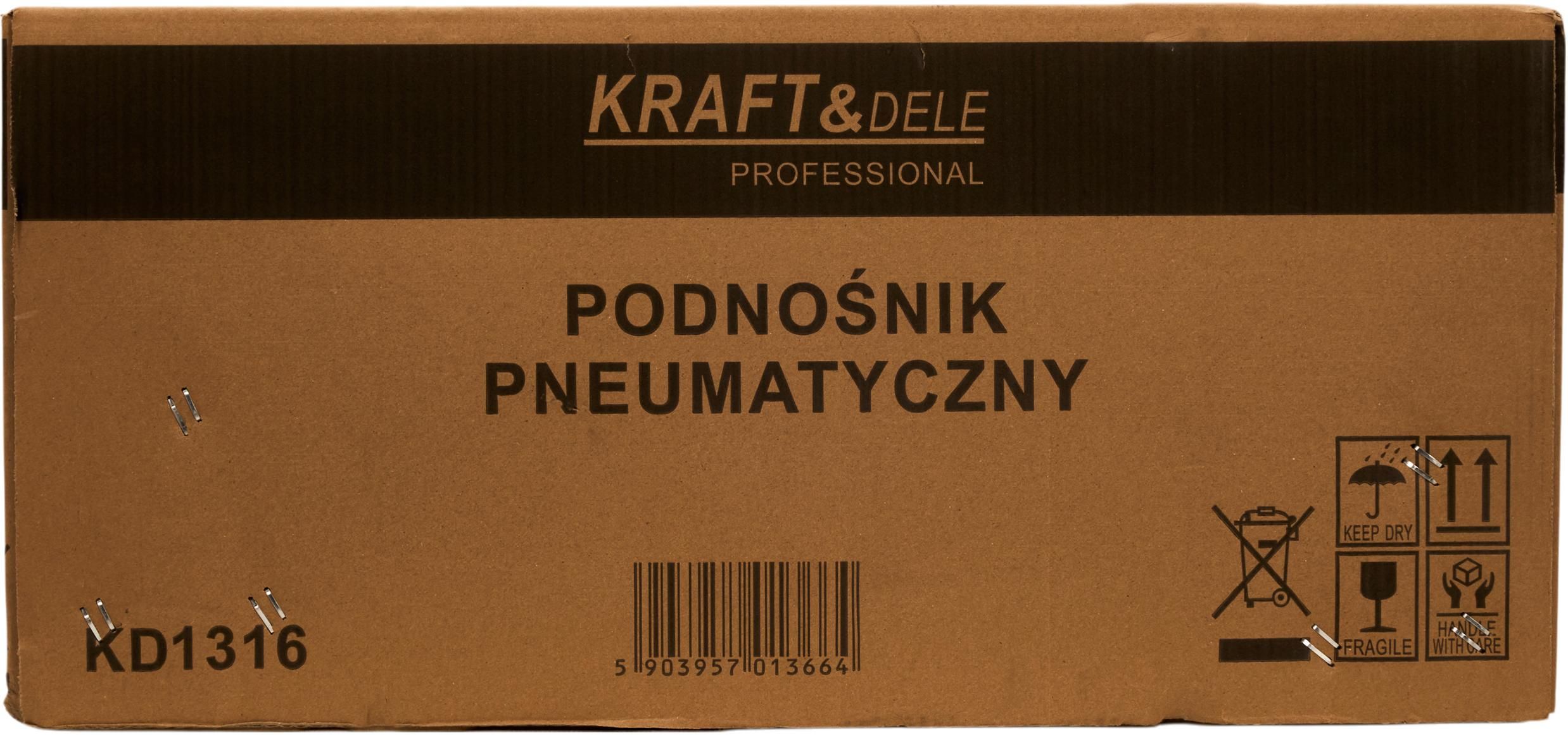 KD1316 je vybavený kolieskami pre jednoduchú prepravu, trojpolohovou nastaviteľnou rukoväťou a pneumatickým ventilom pre pohodlné ovládanie jednou rukou. Vypúšťací ventil umožňuje plynulé spúšťanie zdvíhaného vozidla. Olejnička minimalizuje trenie, znižuje opotrebovanie pracovných častí a chráni ich pred koróziou. Konštrukcia zdviháka umožňuje rýchlu výmenu dištančných vložiek a odnímateľný čap umožňuje zväčšiť pracovnú výšku.