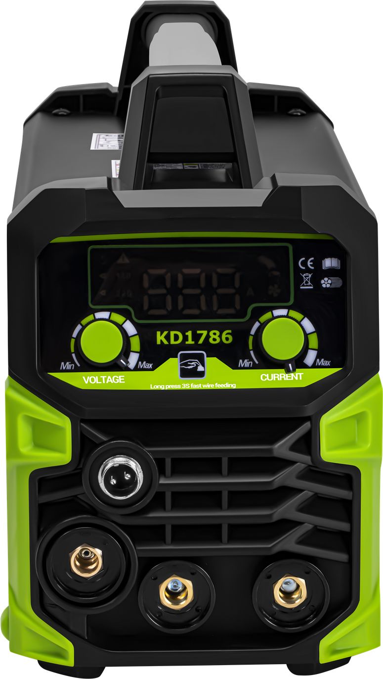 Model KD1786 sa pýši stabilnou rýchlosťou podávania drôtu, energetickou účinnosťou a absenciou elektromagnetického rušenia. Nepretržitá a stabilná prevádzka pri nízkom prúde robí zariadenie ideálnym na zváranie tenkých plechov z nízkouhlíkovej, legovanej a nehrdzavejúcej ocele. Automatická kompenzácia kolísania napätia, nízke úrovne rozstreku, stabilný zvárací oblúk a vysoký pracovný cyklus zaručujú pohodlie a bezpečnosť používania aj pri dlhšej prevádzke.