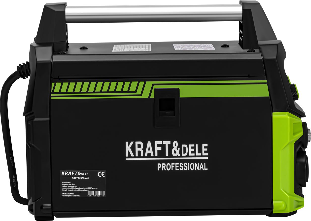 KD1786 je moderná invertorová zváračka od spoločnosti KRAFT&DELE, určená pre širokú škálu aplikácií – od dielenských a servisných prác až po prácu v teréne a opravy v interiéri. Zariadenie kombinuje kompaktný dizajn s vysokým výkonom a ponúka stabilnú a presnú prevádzku vo viacerých režimoch zvárania.