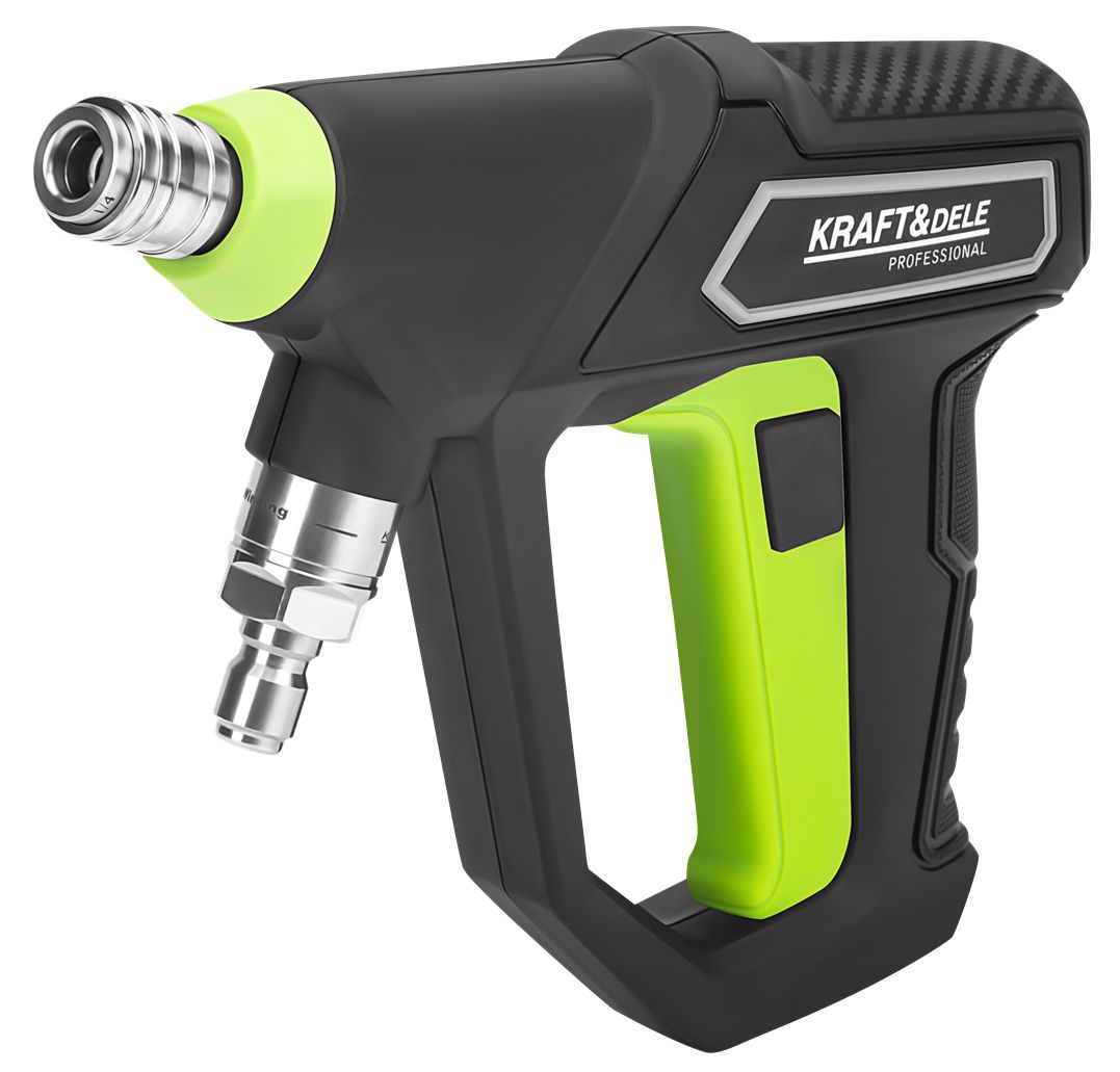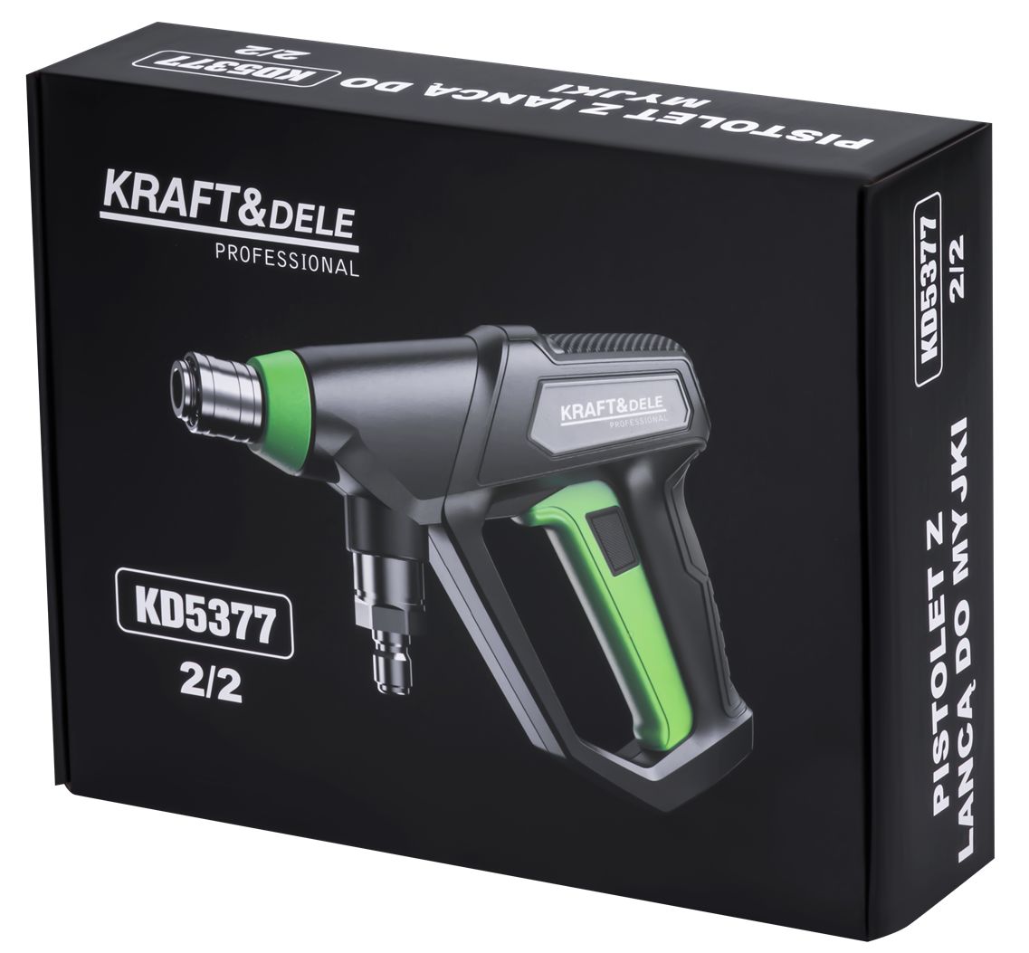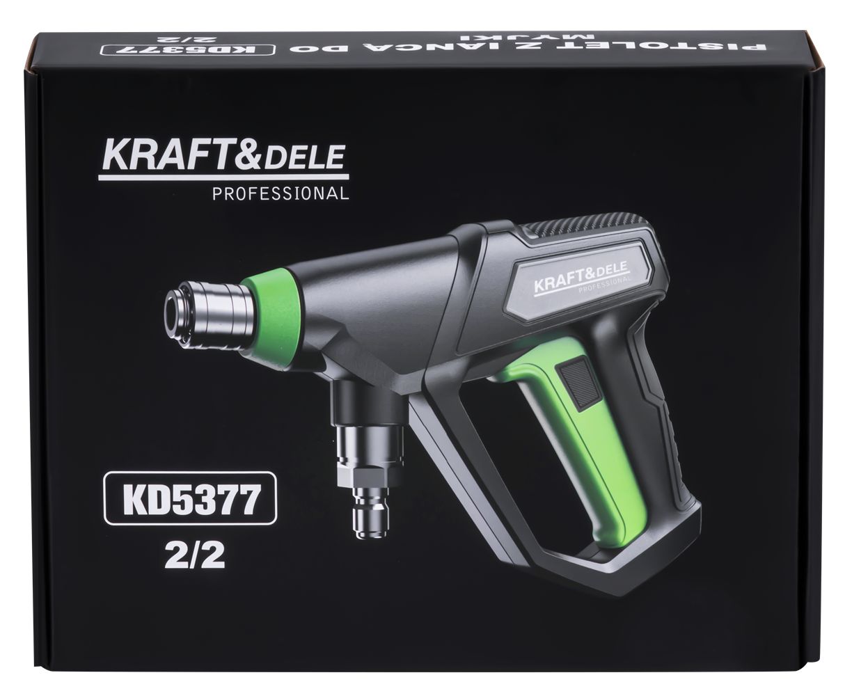 KD5377 je ľahká a ergonomická pištoľ na tlakový čistič určená na použitie s tlakovými čističmi. Jej moderný dizajn a presná spúšť zaisťujú pohodlnú obsluhu počas dlhodobého čistenia, zatiaľ čo protišmyková rukoväť zvyšuje bezpečnosť a kontrolu.