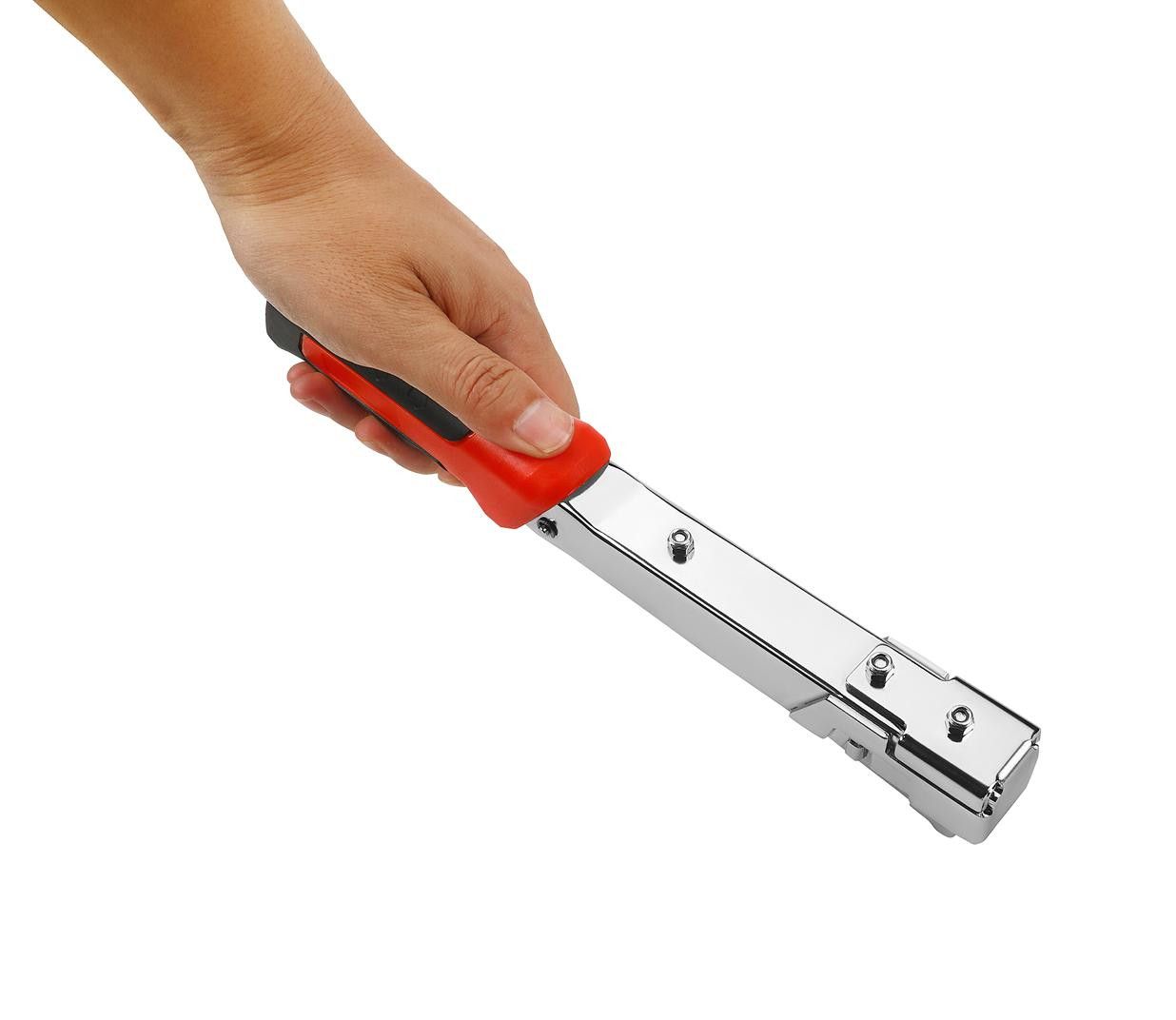 Jednoduchý a ergonomický dizajn umožňuje efektívne ovládanie jednou rukou – jednoducho udrite kladivom do zošívačky, aby ste sponku presne zatĺkli do povrchu. Ľahká a odolná konštrukcia zaisťuje pohodlné používanie a dlhú životnosť. Perfektná voľba pre čalúnenie nábytku, renovácie a iné projekty vyžadujúce silné upevnenie materiálu.