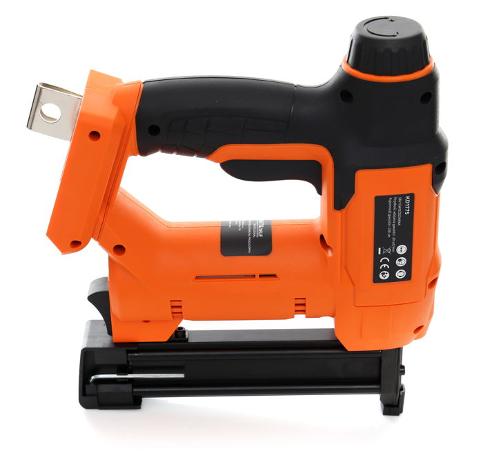 KLINČOVAČKA Kraft&Dele KD1775 zo série PROSERIES s 18V motorom napájaný univerzálnou batériou PROSERIES, určený na zošívanie a zatĺkanie klincov.