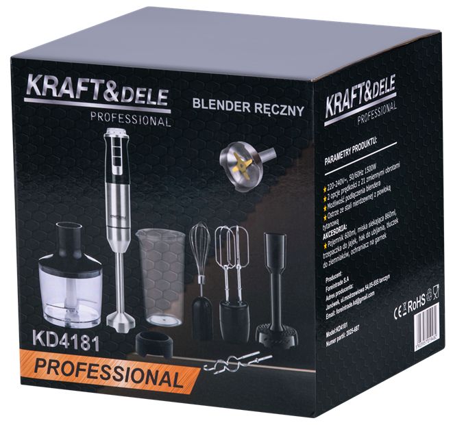 Ručný mixér KD4181 je profesionálny kuchynský spotrebič s výkonom 1500 W určený pre všestranné použitie. Vďaka rýchlosti až 15 000 ot./min a titánovou vrstvou potiahnutej čepele z nehrdzavejúcej ocele dokáže mixér rýchlo a efektívne mixovať, sekať, šľahať a pripravovať rôzne jedlá.