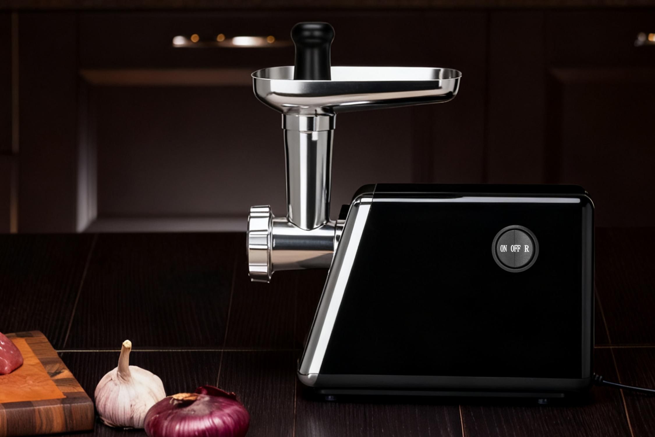 • Nôž s dvojitým rezom: Zaisťuje rýchlejšie a rovnomernejšie mletie, lepšie zvláda tvrdšie ingrediencie a väčšie kusy mäsa.