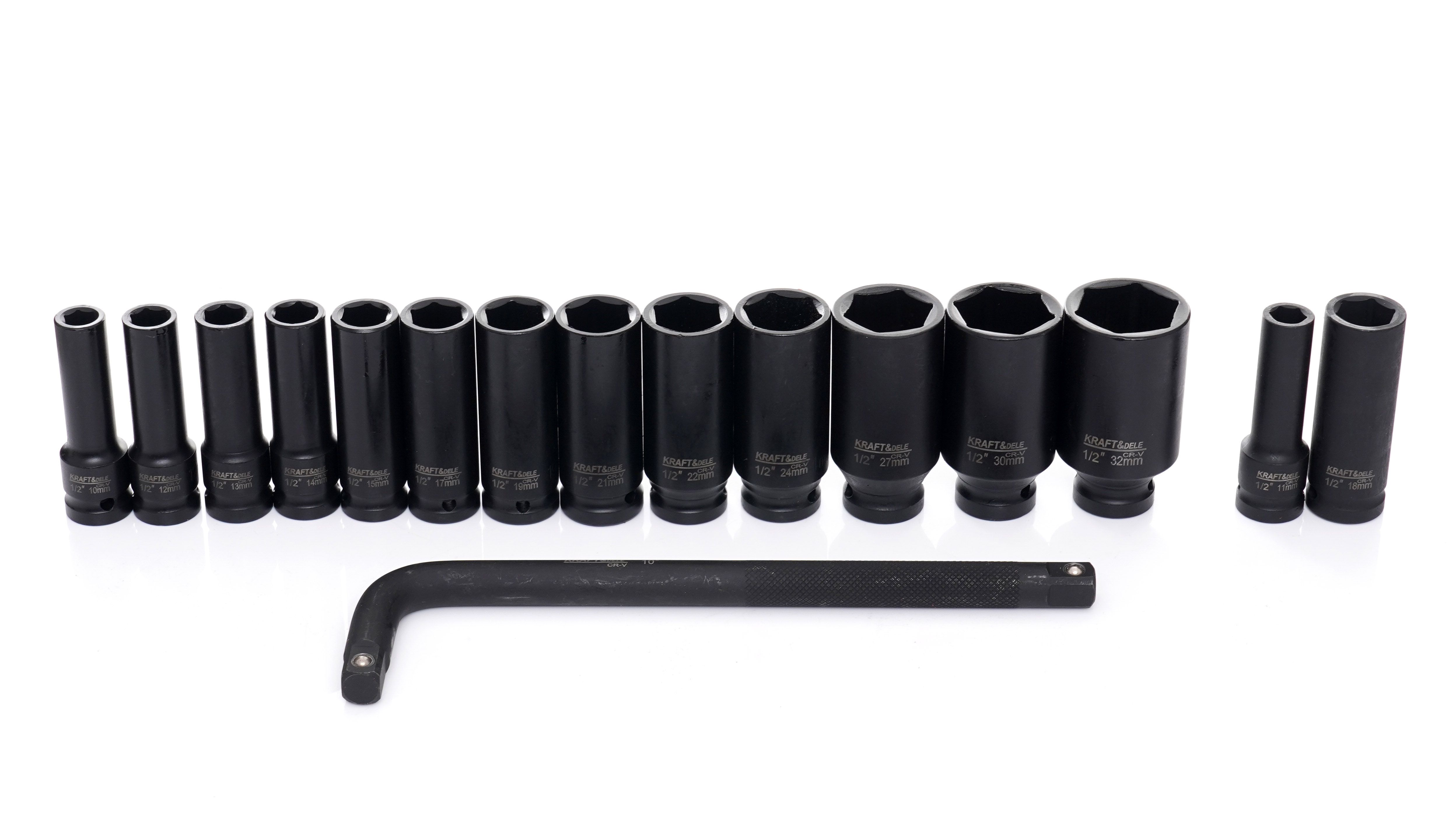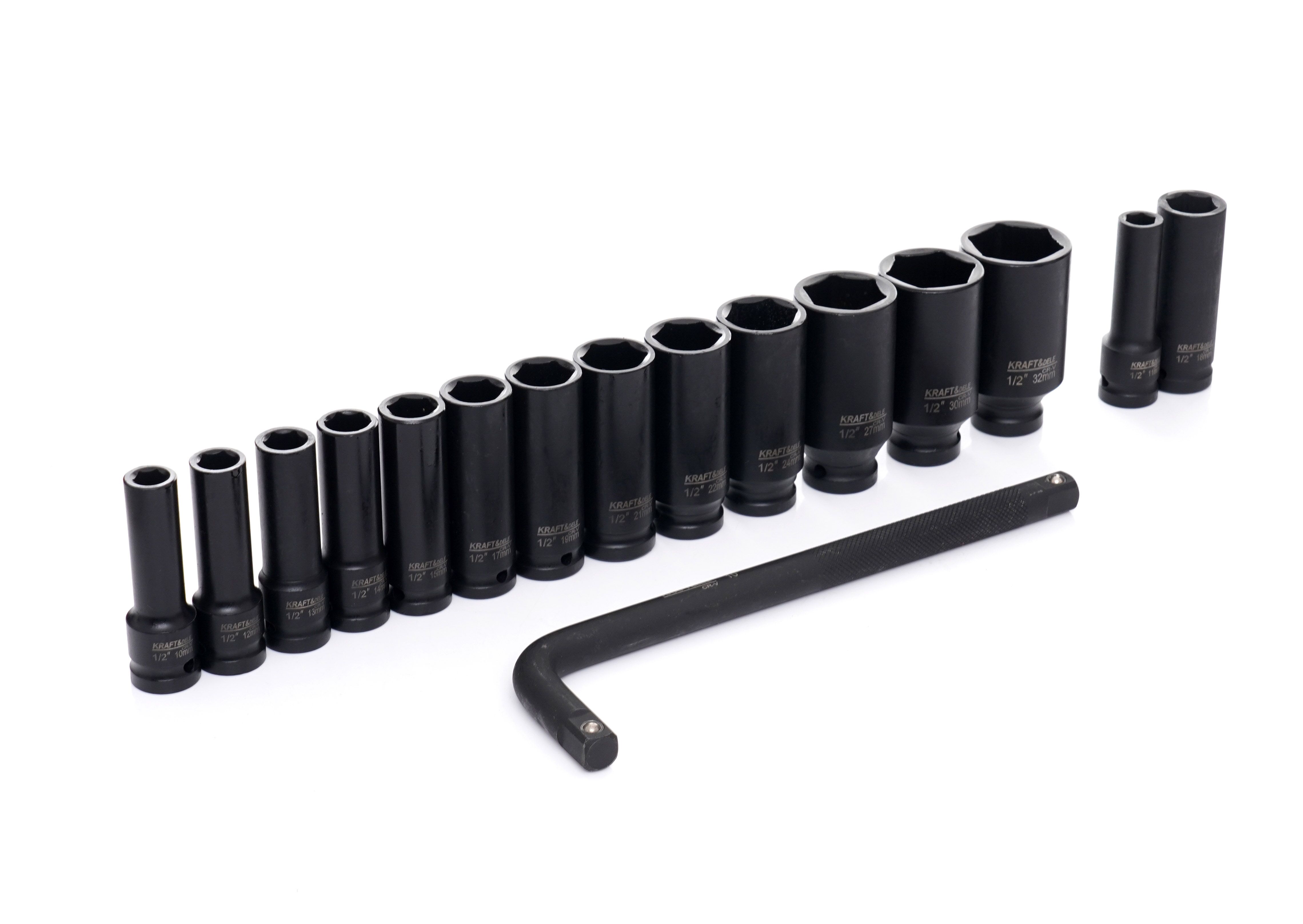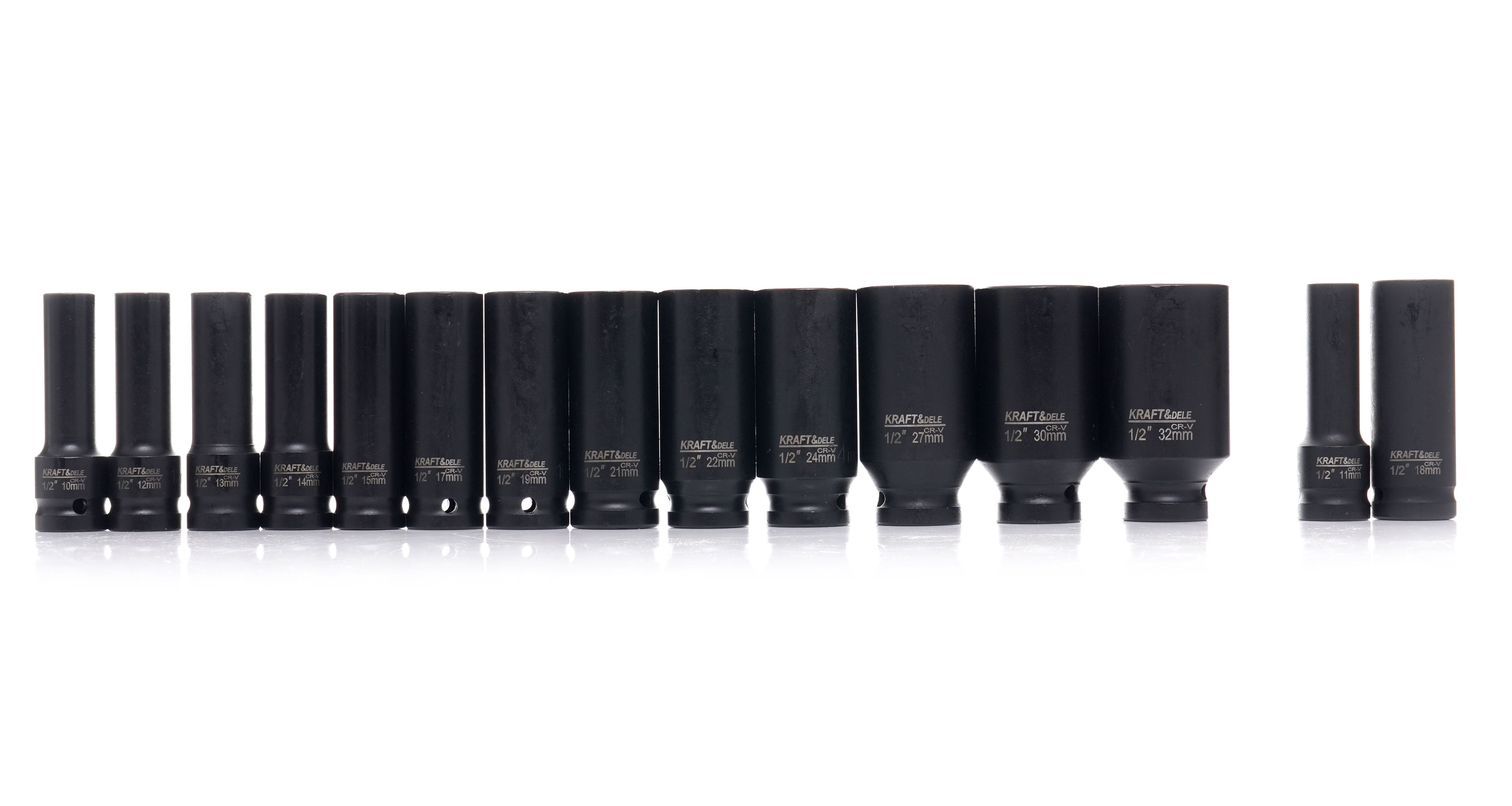Nárazové hlavice 1/2'' 10-32mm 16 ks. KD11755 1/2" rázové nástrčné kľúče Sada rázových nástrčných kľúčov KD11755 je profesionálna sada určená na použitie s pneumatickými a rázovými uťahovákmi. Je ideálna na použitie v náročných dielňach, pneuservisoch a na servis osobných automobilov a dodávok.
