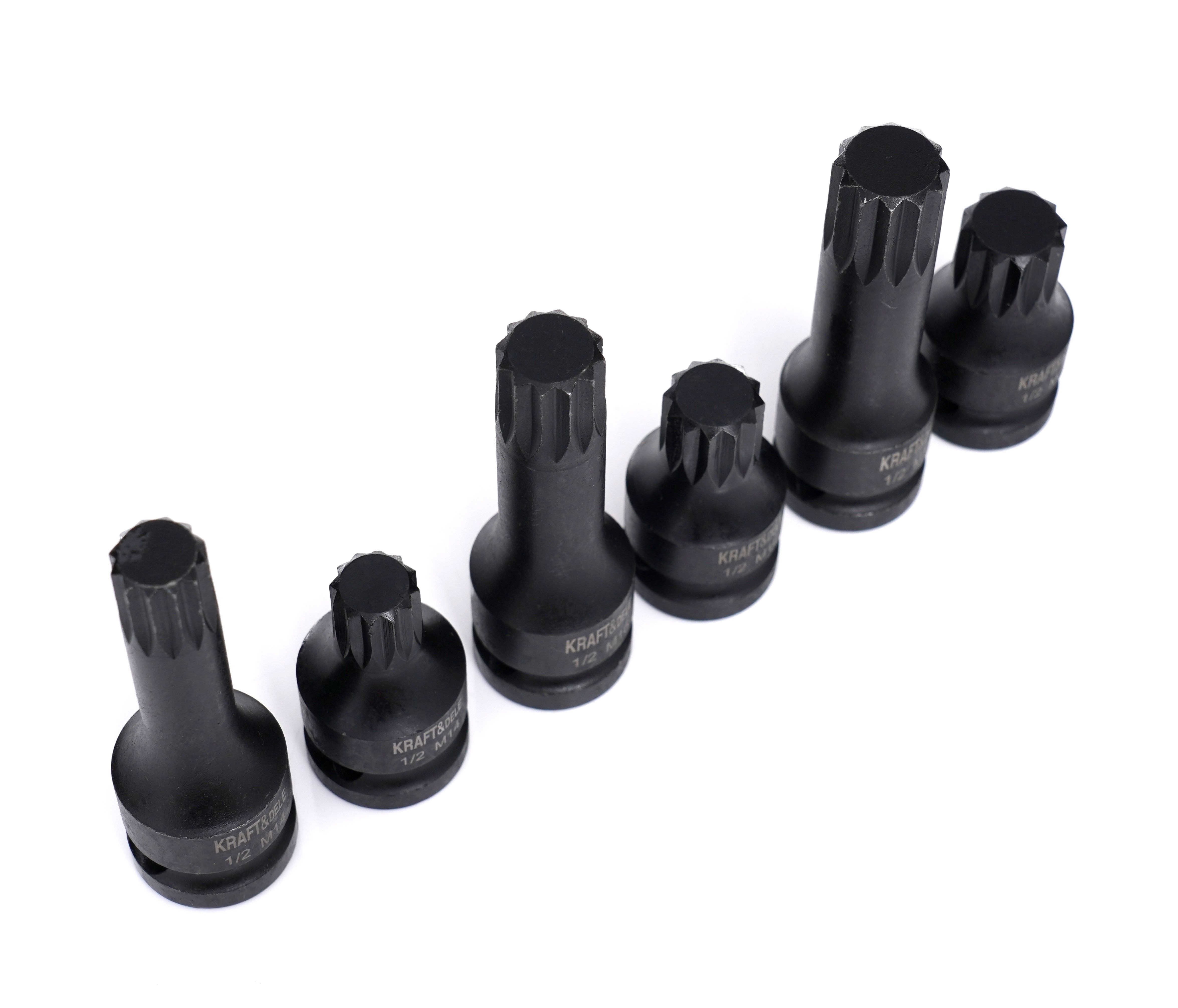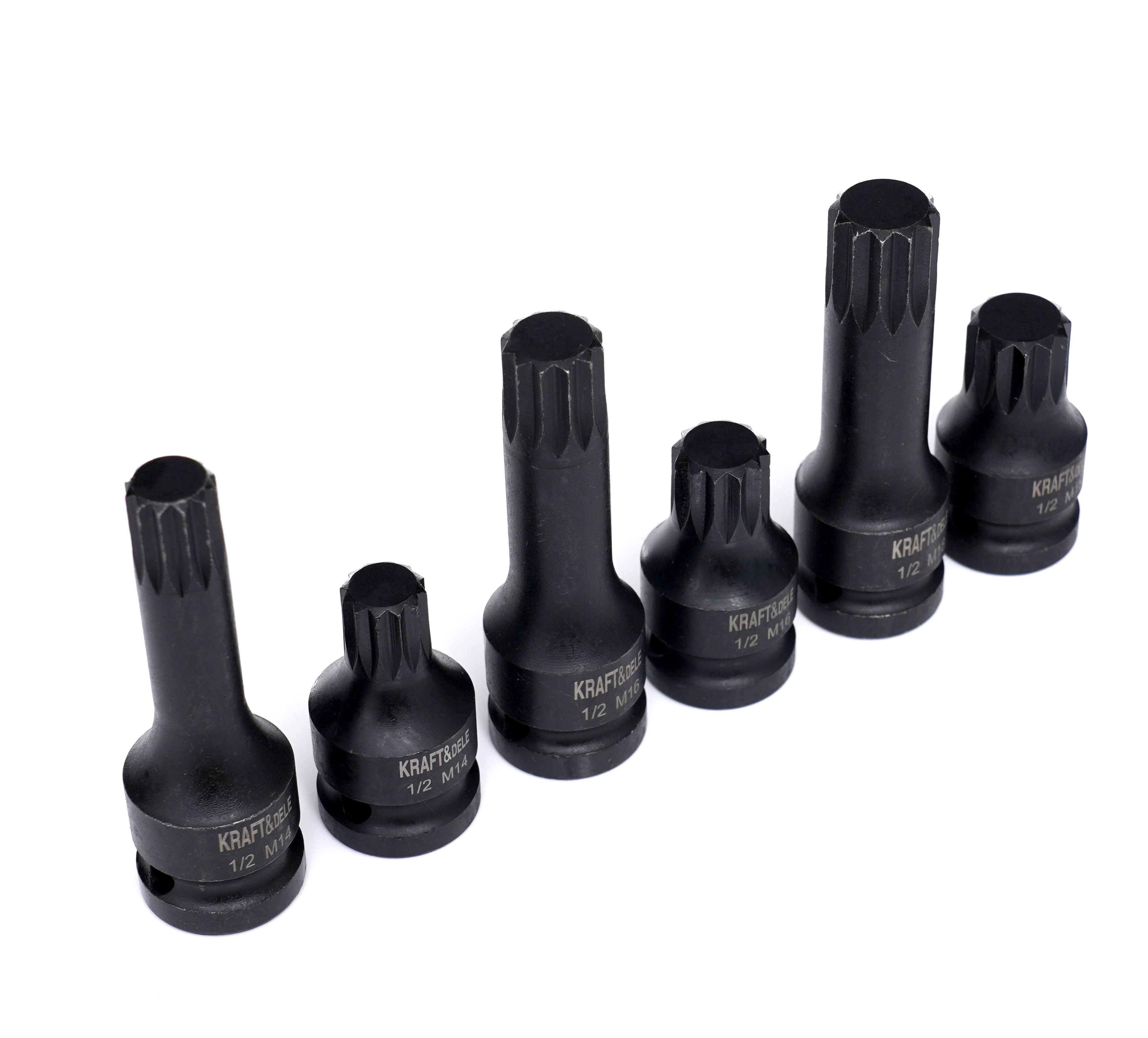 Nárazové hlavice 1/2'' 6 ks 1/2" rázové nástrčné kľúče, 6 kusov KD11761 Sada rázových nástrčných kľúčov KRAFT&DELE KD11761 je profesionálny nástroj určený pre náročné dielenské a priemyselné práce. Je ideálna na prácu s rázovými a pneumatickými uťahovákmi, zaisťuje presnosť a vysokú účinnosť pri inštalácii a odstraňovaní skrutiek a matíc. Nástrčné kľúče sú vyrobené zo špeciálnej chróm-molybdénovej ocele (Cr-Mo), ktorá má dvojnásobnú pevnosť v ťahu a trojnásobnú medzu klzu oproti štandardnej uhlíkovej oceli.