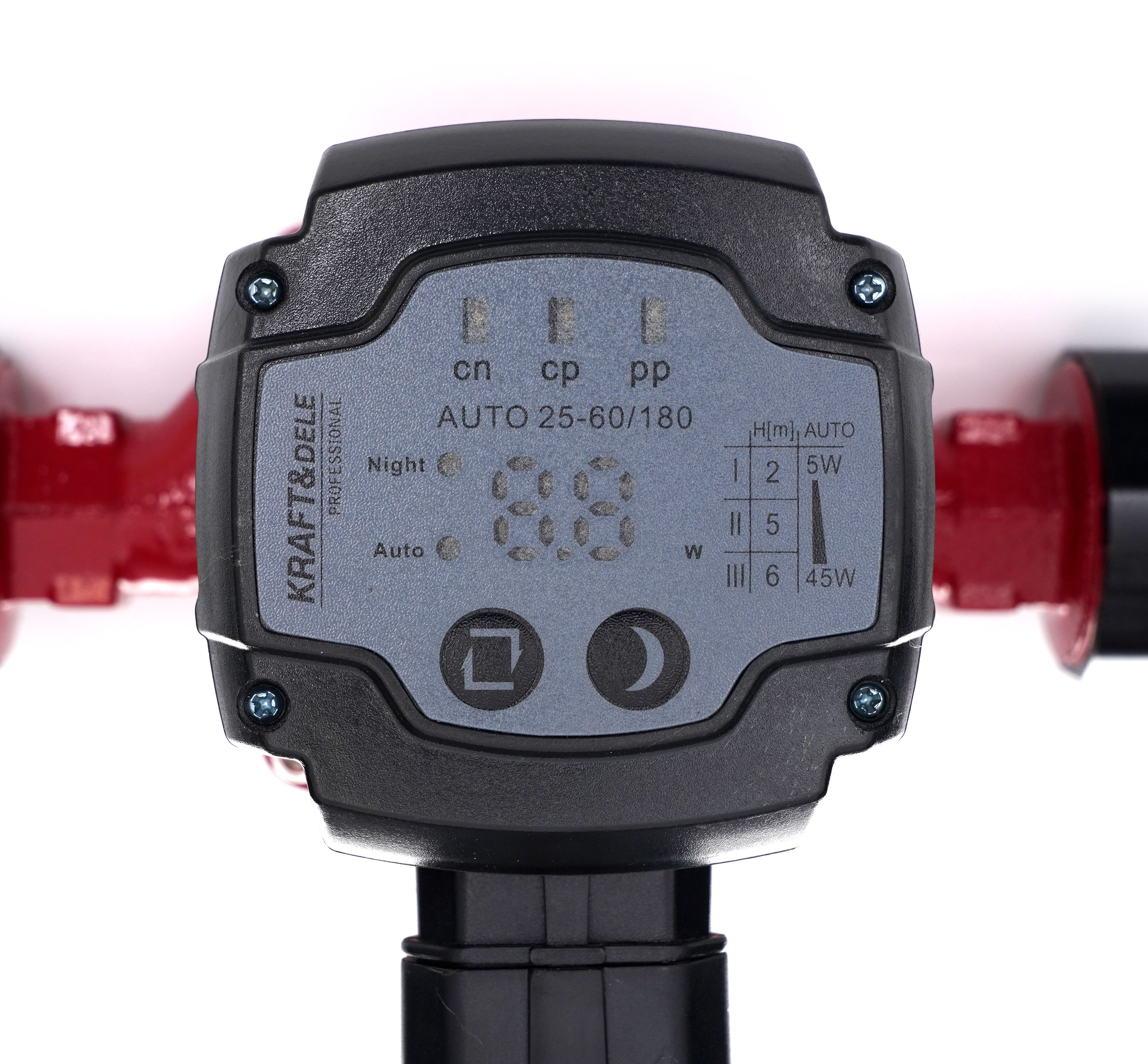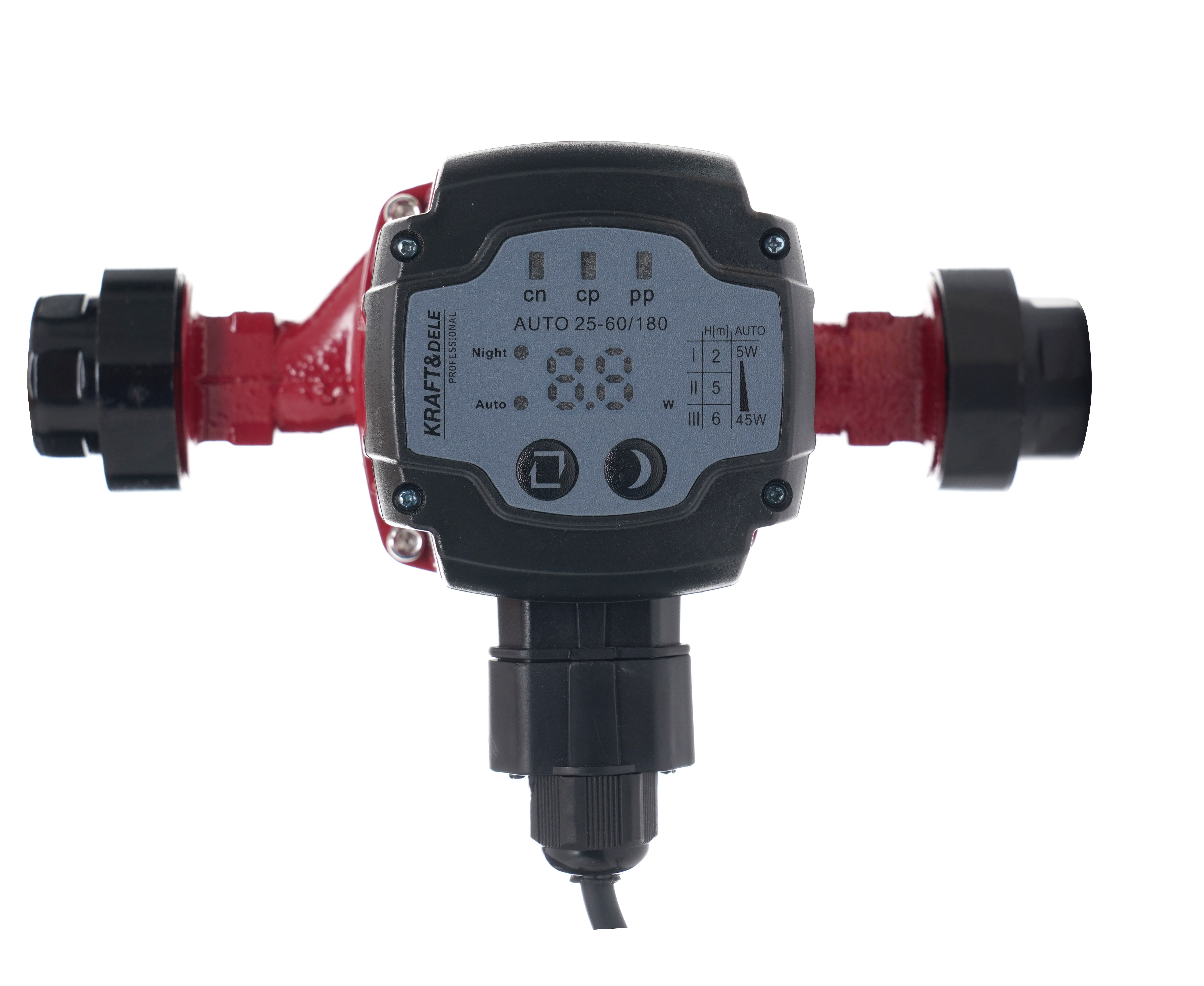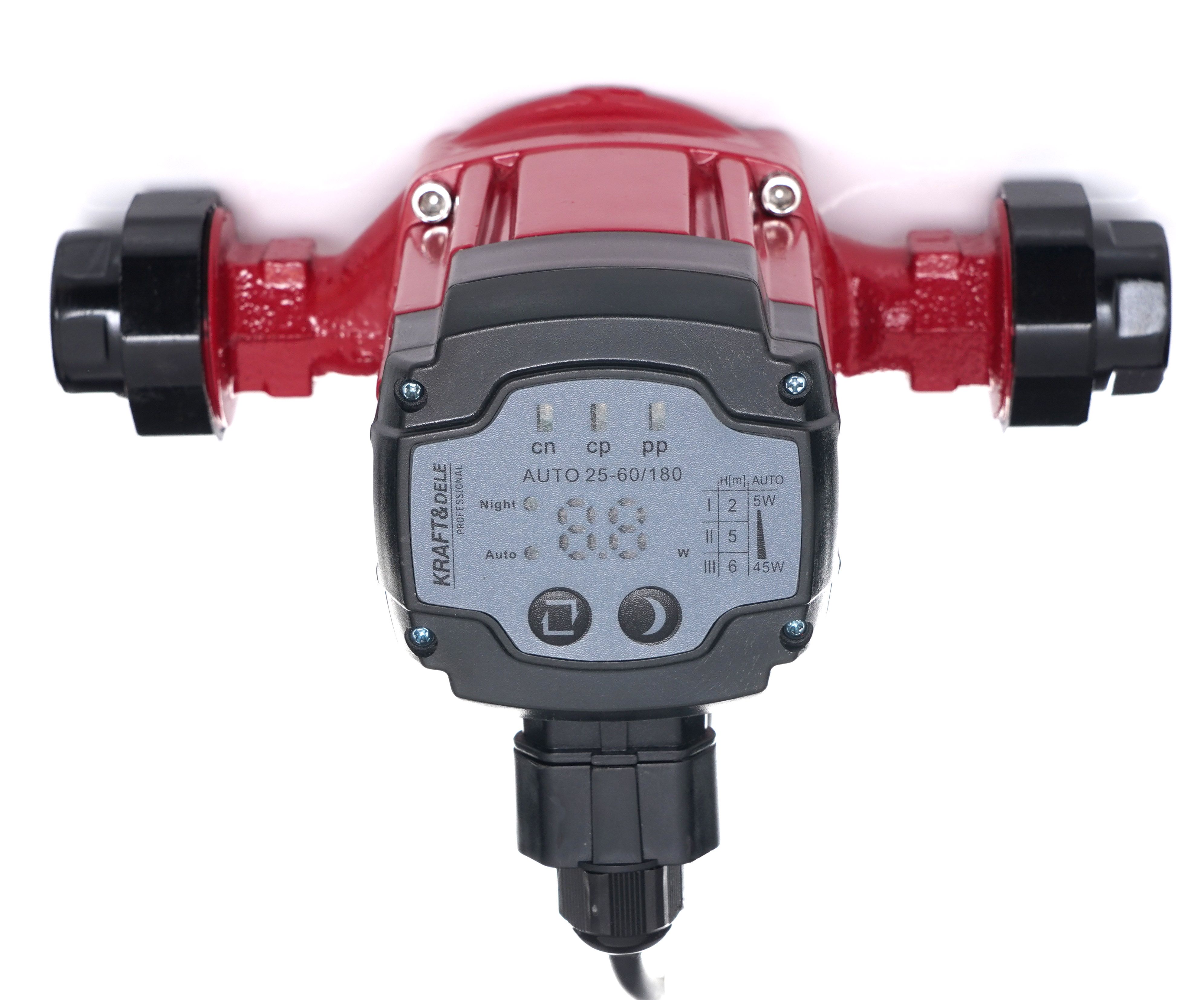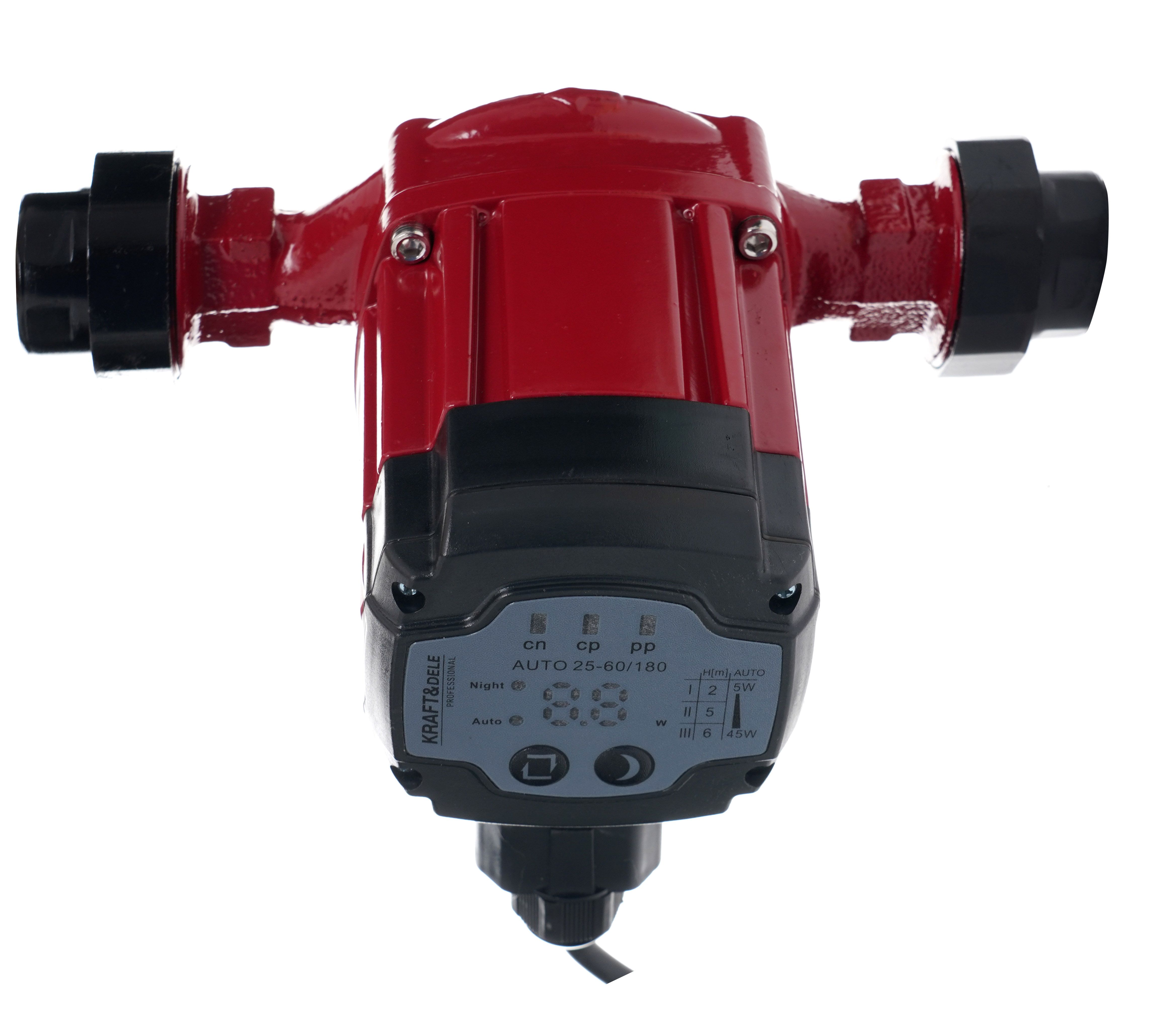 Obehové čerpadlo 60l/min CIRKULÁČNE ČERPADLO 45 W 60 l/min. KD801 Obehové čerpadlo 45 W od Čerpadlo Kraft&Dele je určené na čerpanie teplej vody v systémoch ústredného kúrenia, je vhodné aj na čerpanie riedkych médií v priemysle a remeslách a je prispôsobené aj na použitie so solárnymi systémami. Pouzitie Vstavaný teplotný senzor zodpovedný za zapínanie a vypínanie nočného režimu - dodatočná úspora energie v inštaláciách s kotlami na tuhé palivo, ktoré nie sú vybavené automatickou reguláciou.