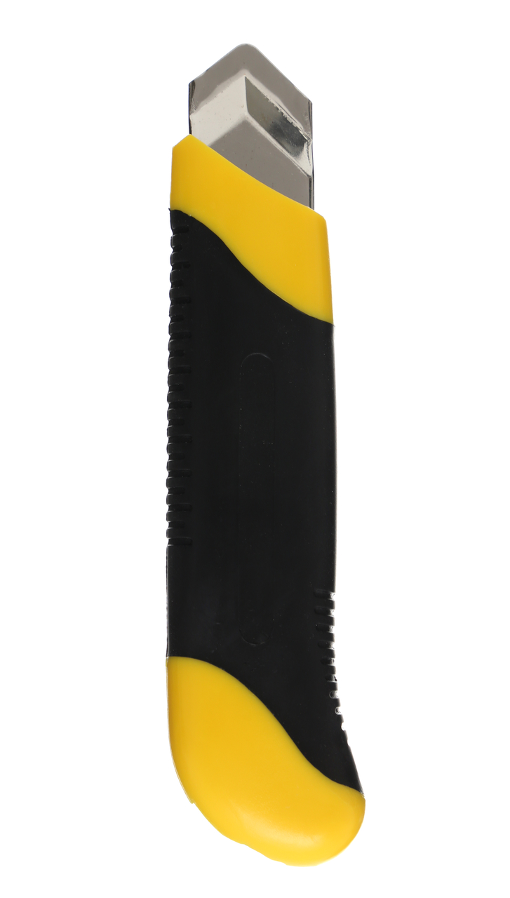 Tvarovaná rukoväť poskytuje pevné uchopenie v ruke. Nôž má plastovú konštrukciu s gumou na zadnej strane.