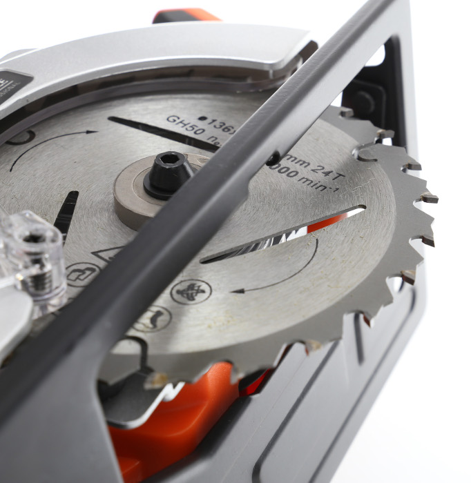 Zariadenie je vyrobené z kvalitného hliníka a plastov, z veľkej časti pokryté gumovým materiálom HIGH GRIP, zaručujúcim bezpečné uchopenie za každých podmienok. Píla je vybavená ochranným krytom kotúča, ktorý zaisťuje bezpečnosť, keď sa zariadenie nepoužíva.