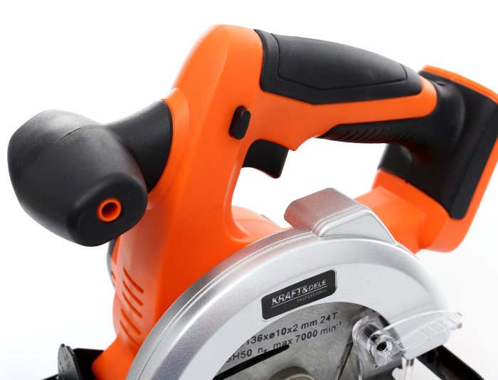 Zariadenie je vyrobené z kvalitného hliníka a plastov, z veľkej časti pokryté gumovým materiálom HIGH GRIP, zaručujúcim bezpečné uchopenie za každých podmienok. Píla je vybavená ochranným krytom kotúča, ktorý zaisťuje bezpečnosť, keď sa zariadenie nepoužíva.