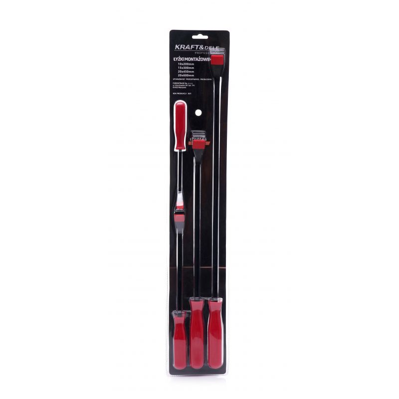 Sada montážnych pák na pneumatiky značky Kraft&Dele, model KD10546. Páčidlá z tvrdenej ocele na použitie pri rozoberaní, páčení, ohýbaní alebo opätovnej montáži. Vyrobené z pevnej ocele, veľmi odolné a odolajú vysokému tlaku.