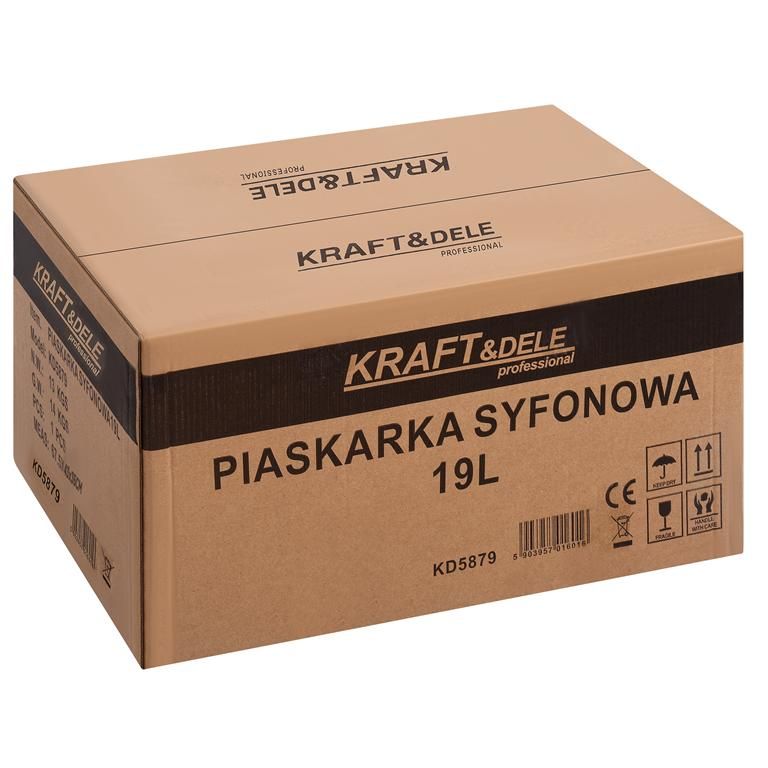 Sifónová pieskovačka KD5879 s objemom 19 litrov je vyrobená z odolných materiálov, odolných voči abrazívam a dielenským podmienkam. Ergonomický dizajn umožňuje pohodlné používanie aj pri dlhšej práci.