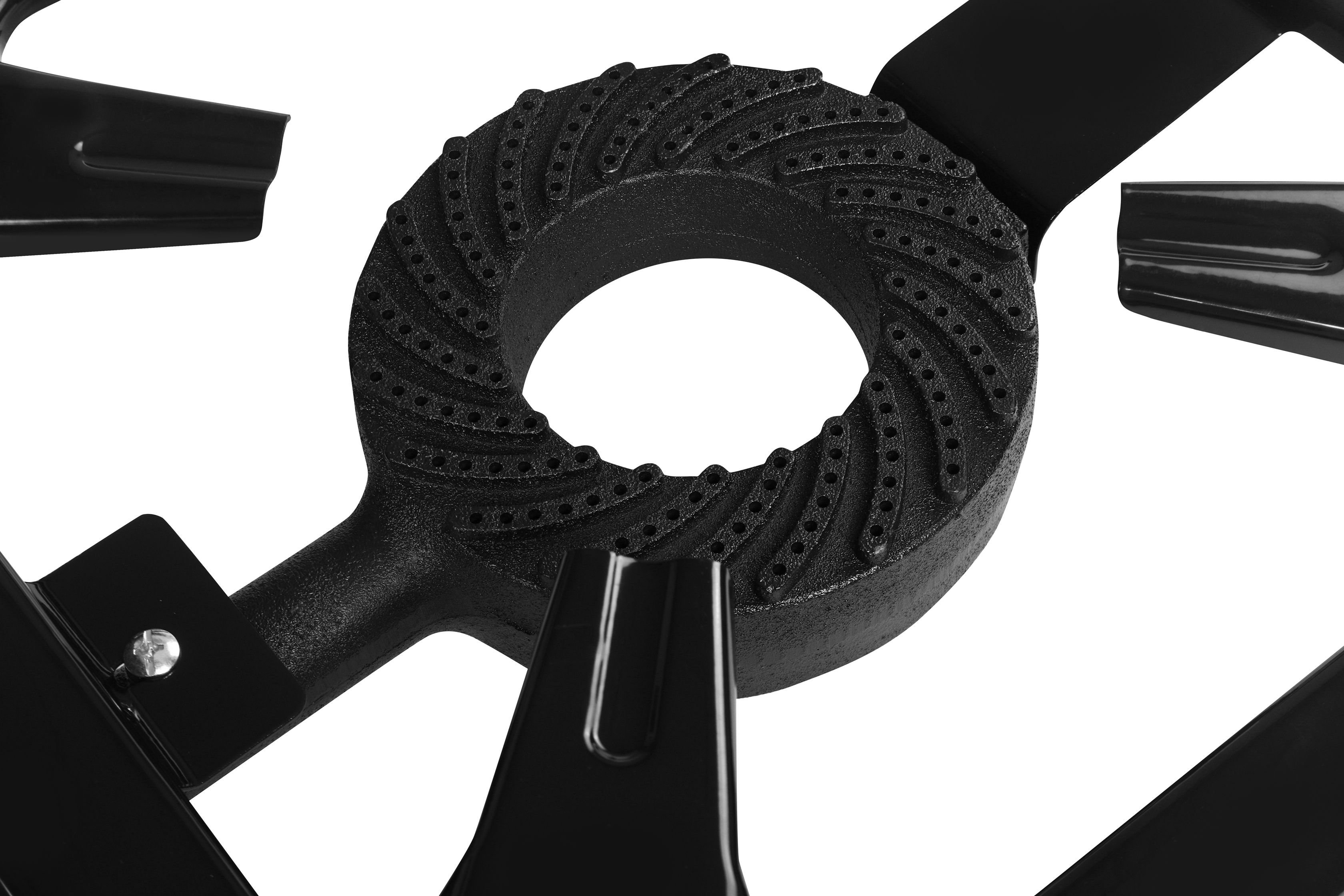 Prívod plynu a výkon plameňa sa nastavujú pomocou otočného ventilu, čo poskytuje úplnú kontrolu nad varením. Stolička je natretá čiernou farbou a jej ľahká konštrukcia váži iba 3 kg.