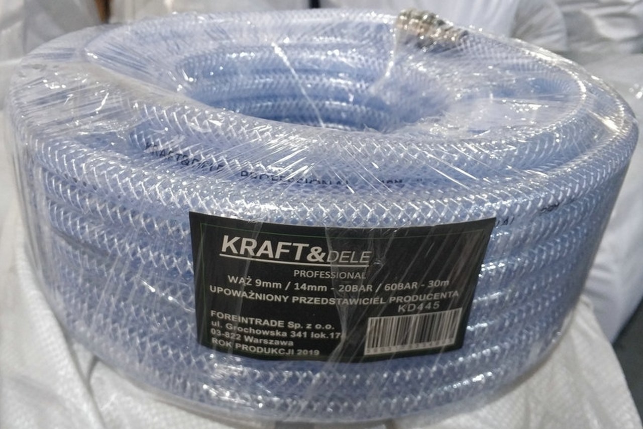 Pneumatická hadica KD445 od spoločnosti ​​Kraft&Dele je vyrobená z pružného PVC a vystužená polyesterovou sieťovinou. Takéto zloženie výrobku zaisťuje tesný tok vzduchu a kvapaliny pri vysokých statických tlakoch.