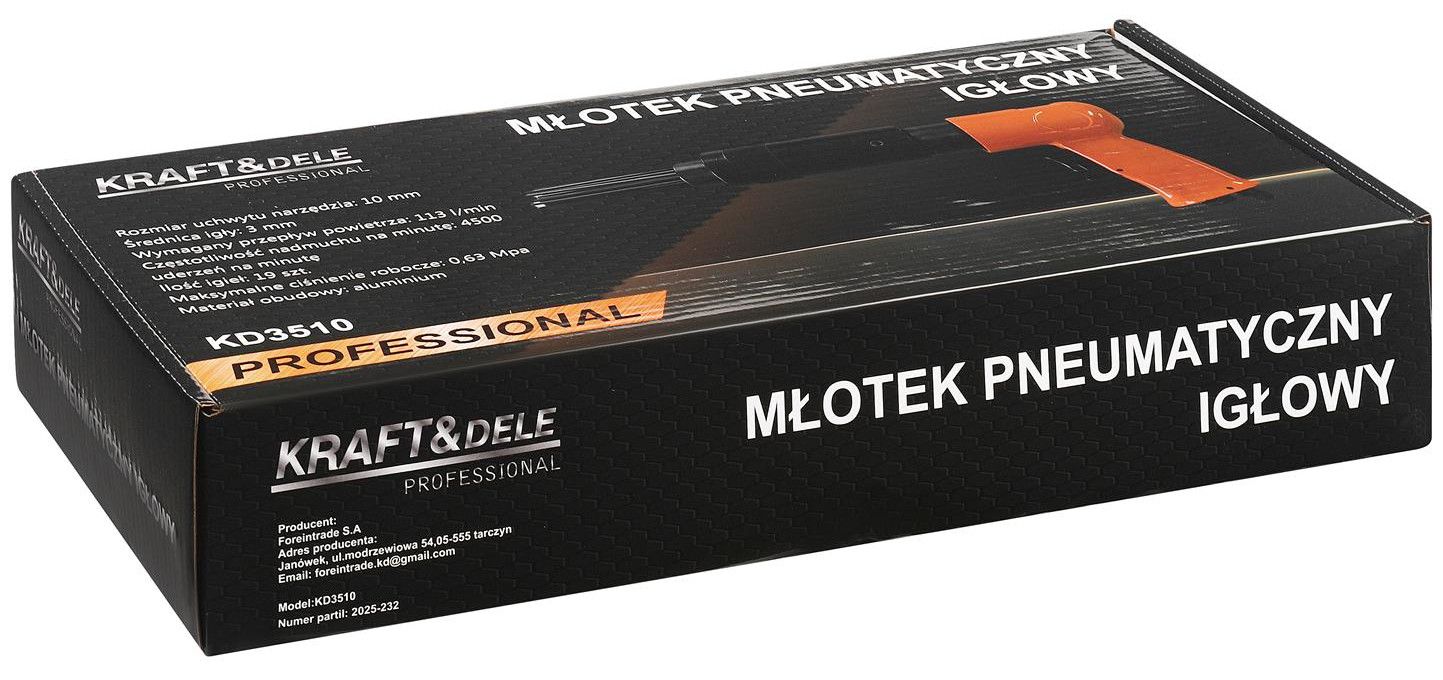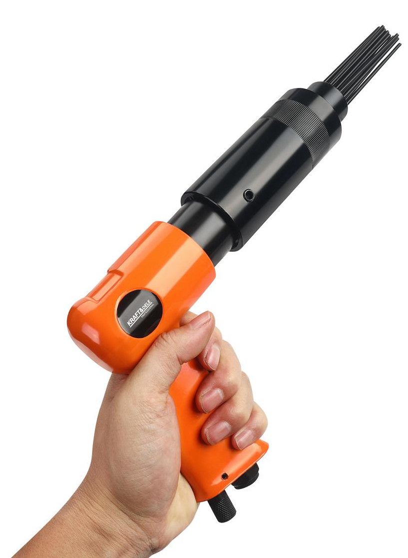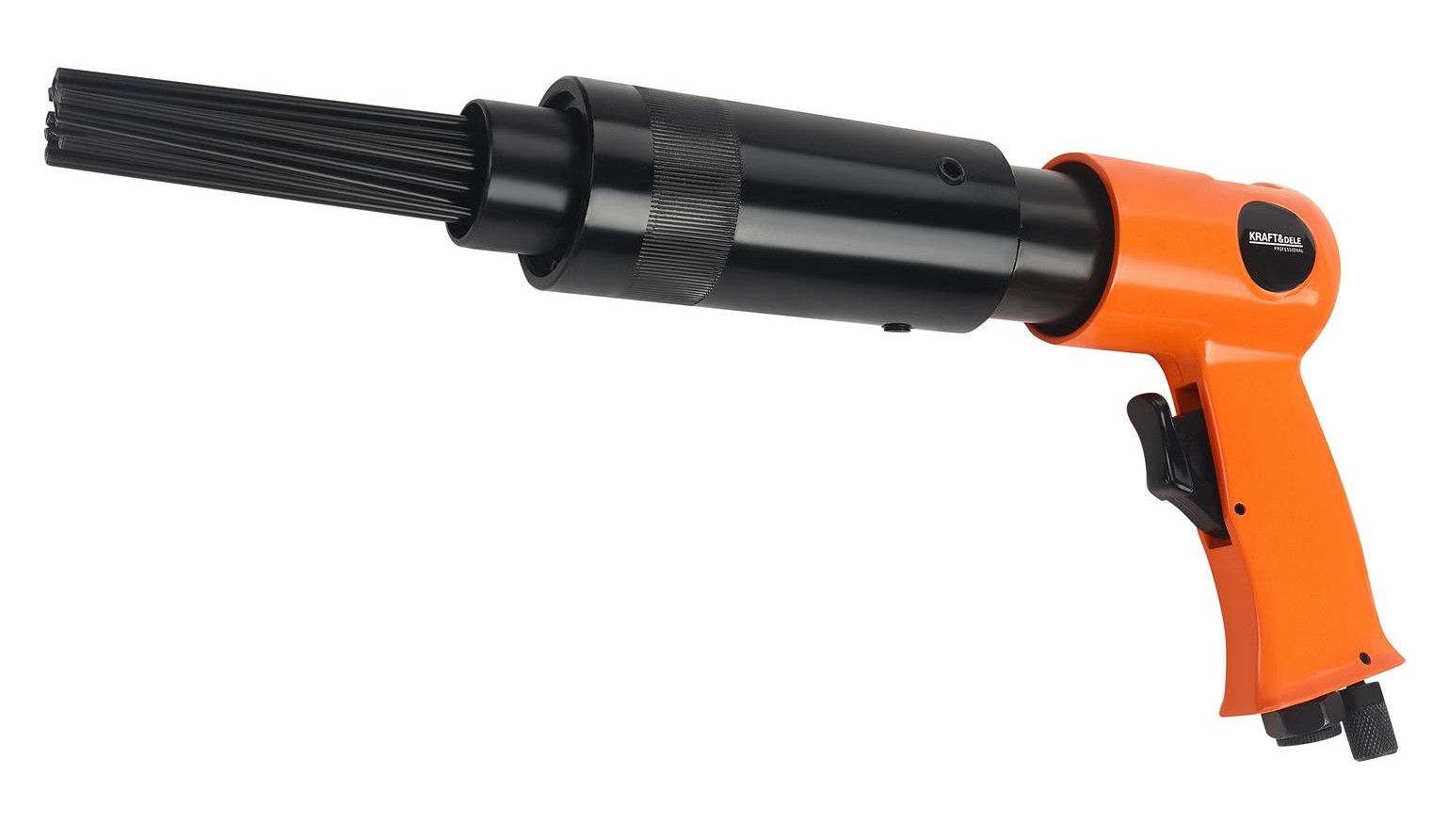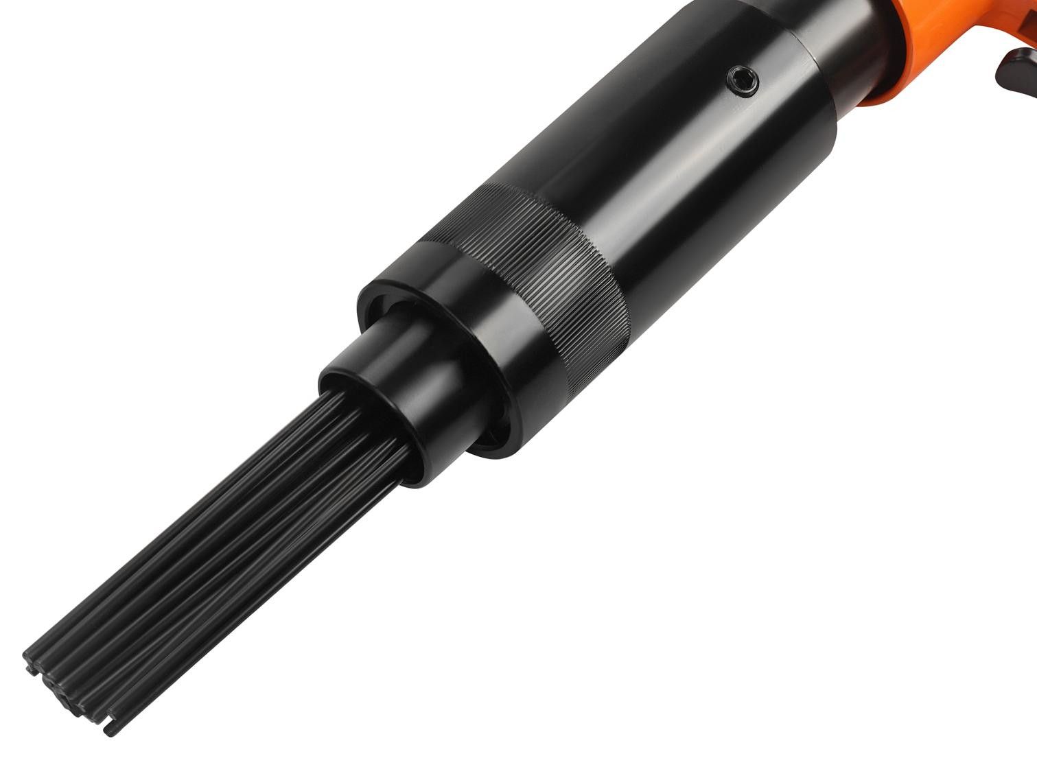 Pneumatické ihlové kladivo KD3510 je špecializovaný nástroj určený na intenzívne čistenie, ako je odstraňovanie hrdze, farby, zváracej trosky a priemyselných usadenín. Vďaka 19 oceľovým ihlám sa zariadenie dokonale prispôsobí nerovným povrchom a efektívne čistí ťažko dostupné miesta.