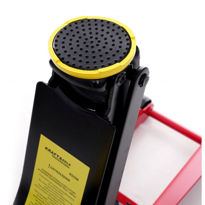 Autozdvihák Kraft&Dele 3.5T KD356 je určený na zdvíhanie áut vo výške 70mm až 500mm, vyrobený z pevných materiálov, ktoré zaisťujú dlhodobú odolnosť a pevnosť. Plech je lisovaný do špeciálnych profilov, ktoré zvyšujú tuhosť konštrukcie. Kolieska umožňujú ľahký pohyb pod autom. Silná konštrukcia. Otočný tanier.