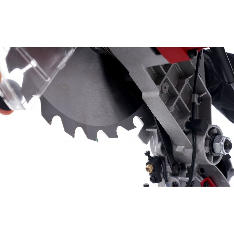 Pokosová píla je vybavená nastaviteľným laserom, ktorý presne indikuje hranu rezu, čo výrazne zlepšuje prácu a spresňuje rezy.