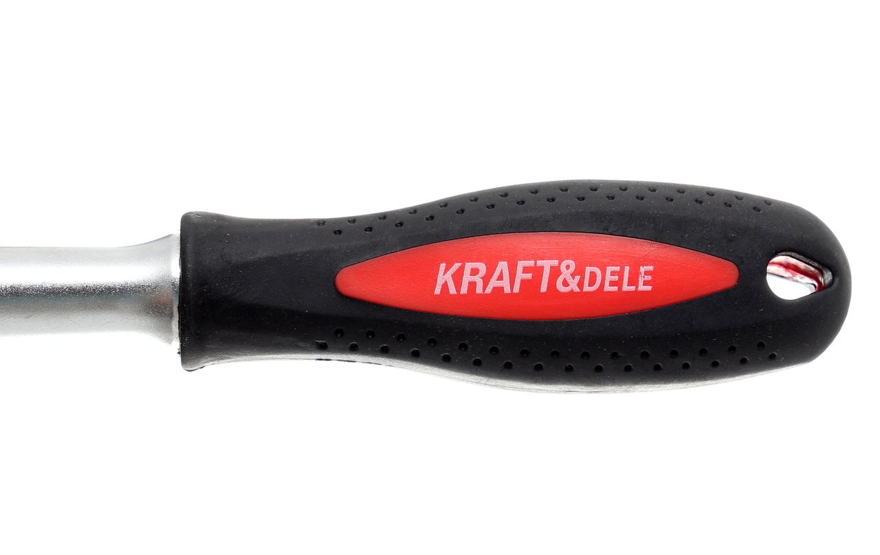 Račňa s rovnou rukoväťou značky Kraft&Dele, model KD11004, veľkosť 3/8″ je vyrobená z chróm-vanádiovej ocele, ktorá zaisťuje vysokú odolnosť. Račňa je vybavená mechanizmom so 72 zubmi.