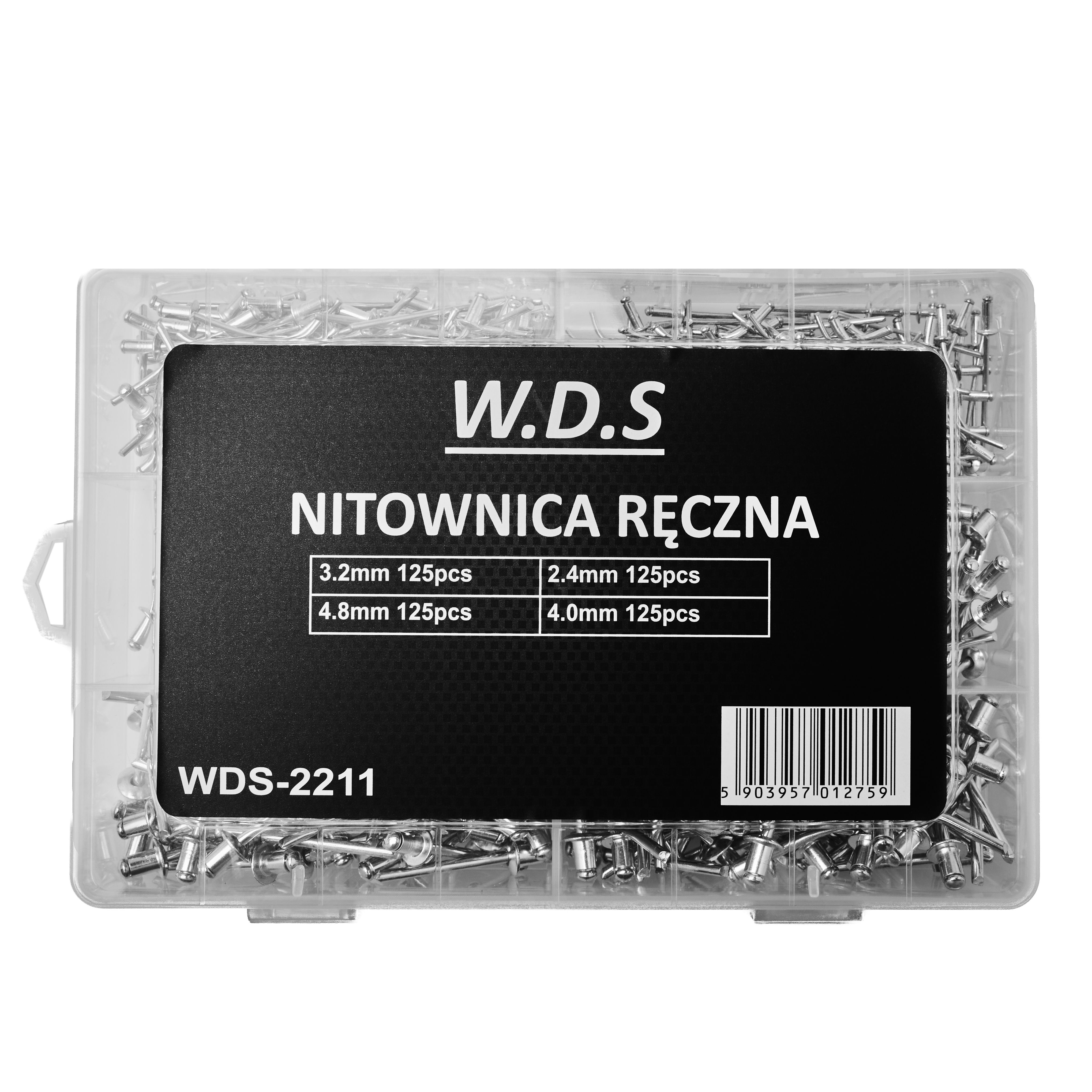 • Obsah balenia S ⚙️ Model WDS2211 ⚙️ Typ nástroja Ručný nitovač ⚙️ Konštrukcia Vysokokvalitná oceľ a hliník ⚙️ Podporované nity 2,4 mm, 3,2 mm, 4,0 mm a 4,8 mm ⚙️ Späť Pružina Áno ZLOŽENIE VÝROBKU: ✅ Nitovací nástroj WDS2211 ✅ Sada 500 nitov 2,4 mm - 125 ks 3,2 mm - 125 ks 4,0 mm - 125 ks 4,8 mm - 125 ks ✅ Originálne balenie ✅ Pokladničný doklad alebo faktúra s DPH ručný nitovač; nitovačka wds; sada nitov; oceľový nitovač; hliníkový nitovač; nitovací nástroj; wds2211; profesionálny nitovač;.