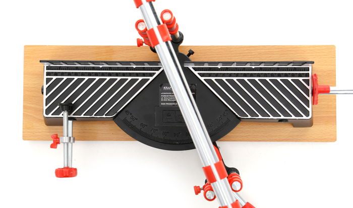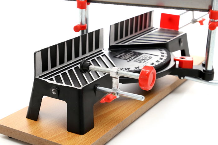 Možnosť nastavenia automatických uhlov 22,5 °, 30 °, 36 °, 45 °, 90 ° alebo manuálneho nastavenia uhla podľa potreby. Konštrukcia je prispôsobená na upevnenie na stolík. Píla má možnosť nastaviť požadovaný uhol rezu až do 45 ° (zvisle).