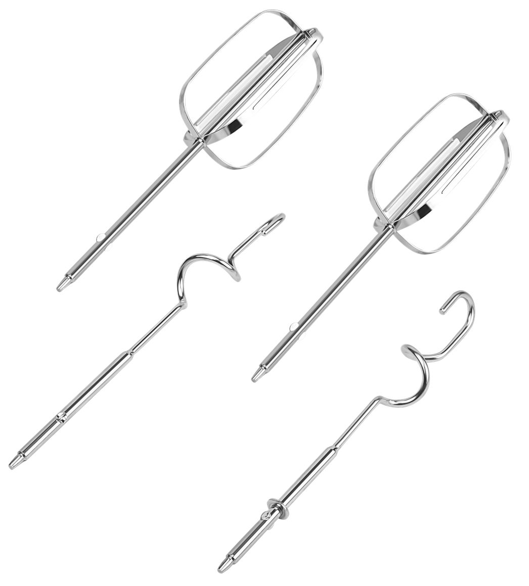 Sada obsahuje 2 metličky a 2 háky na cesto, čo umožňuje všestranné použitie – od ľahkých krémov až po husté cesto na chlieb. Ergonomický dizajn a intuitívne ovládanie robia prácu s mixérom pohodlnou a efektívnou. Odnímateľná hlavica vám navyše umožňuje používať zariadenie ako klasický ručný mixér.