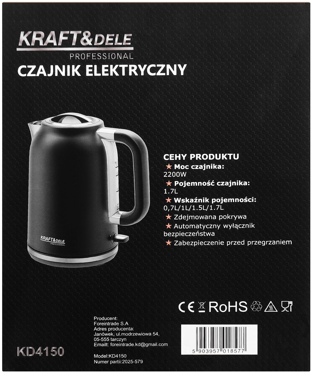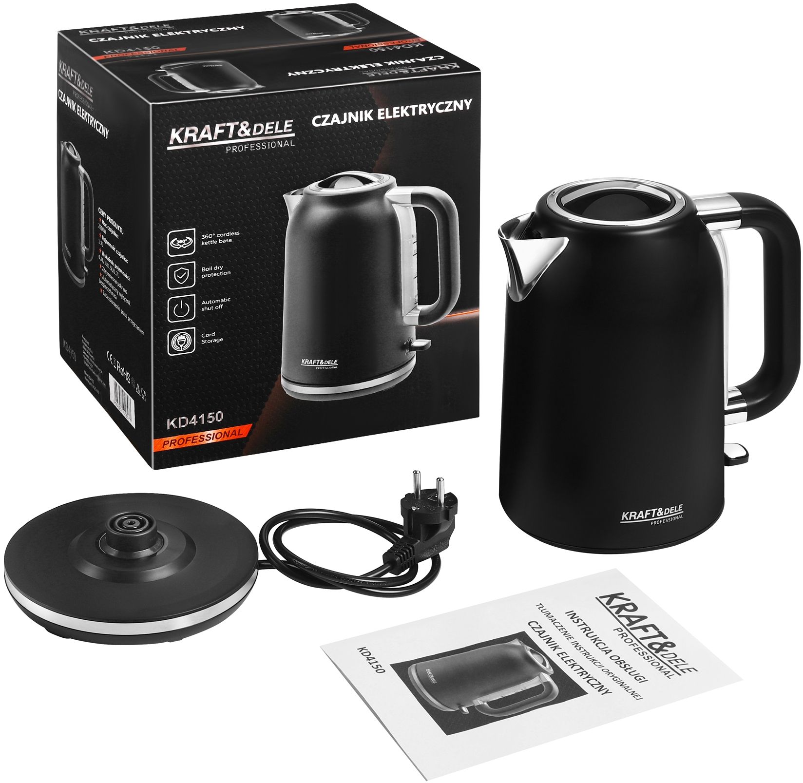 Rýchla kanvica KRAFT&DELE KD4150 vám umožní rýchlo a bezpečne uvariť vodu. S objemom 1,7 l je ideálna do každej domácnosti alebo kancelárie a ľahko čitateľný indikátor hladiny vody vám umožňuje presne odmerať potrebné množstvo.