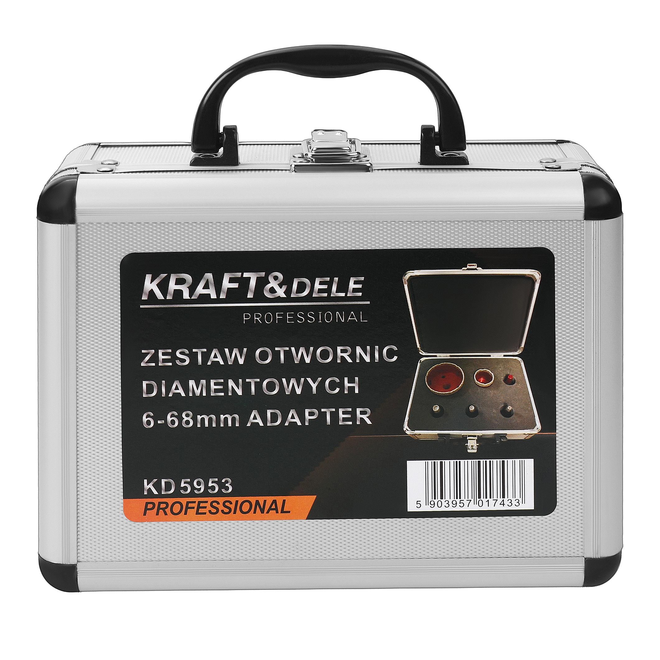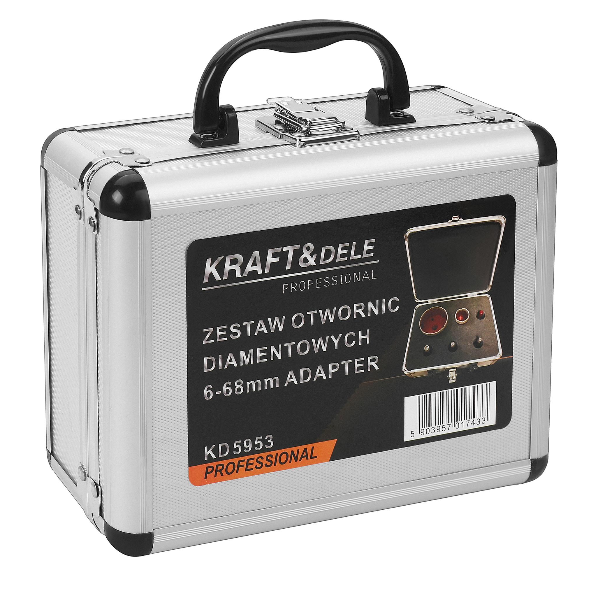 Súprava diamantových dierových píl KRAFT&DELE KD5953 je kompletná sada nástrojov na presné vŕtanie do tvrdých materiálov, ako je keramika, kamenina a kameň. Vďaka rôznym priemerom dierových píl a priloženému adaptéru sa práca stáva rýchlou, presnou a pohodlnou.