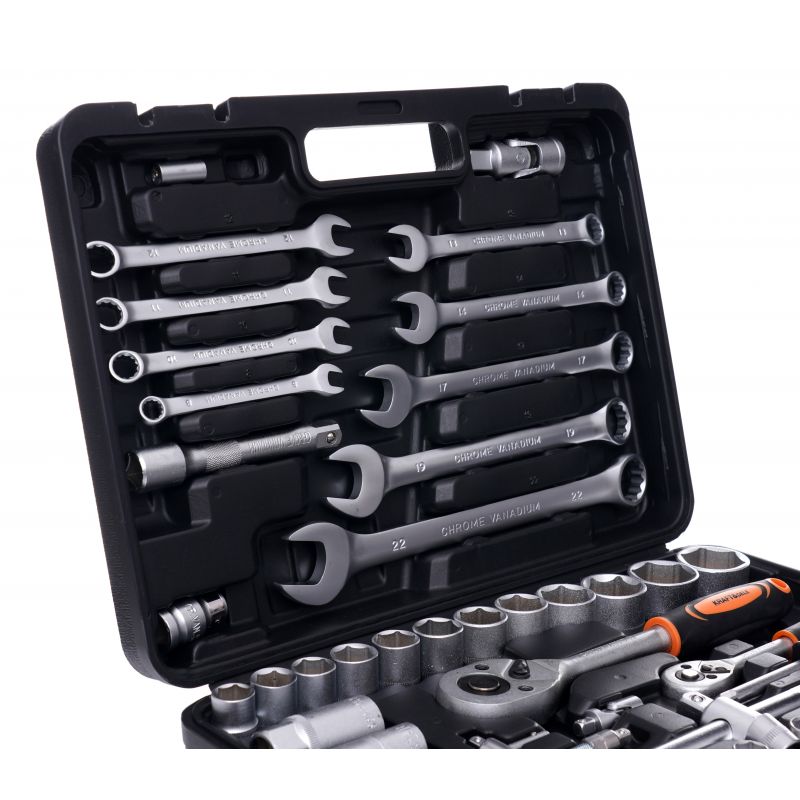 Súprava pozostáva z 82 prvkov. Každý z nich bol vyrobený z vysoko kvalitnej ocele. Vďaka tomu je možné nástroje použiť na prácu vyžadujúcu veľkú silu bez obáv z ich poškodenia.